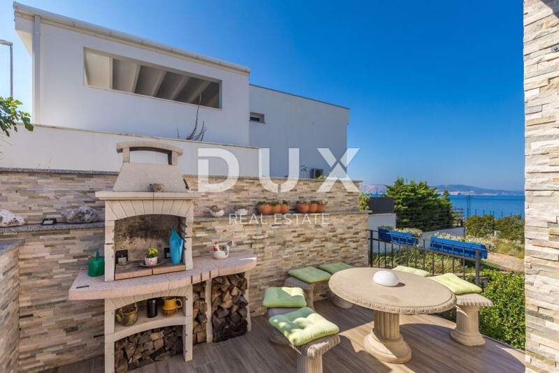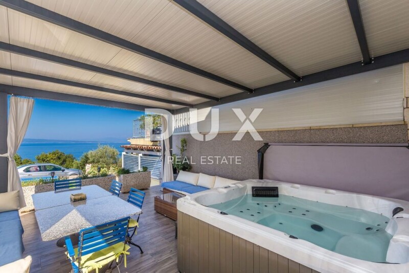 KLENOVICA - Semi-detached house with jacuzzi and sea view On the ground floor there is a kitchen with a dining room, a toilet, a living room with access to a covered terrace, and an additional large living room with its own entrance, which is used for gatherings. An internal staircase leads to the first floor where there are two bedrooms, one of which has access to a terrace with a panoramic view of the sea, and a bathroom. The house has two storage areas, an outdoor storage room, and a large tavern. On the beautifully landscaped garden, full of Mediterranean plants, there is another covered terrace with a jacuzzi from which you can also see the sea and garden furniture. There is enough space in the garden to build a swimming pool. Dear clients, the agency commission is charged in accordance with the General Business Conditions www.dux-nekretnine.hr/opci-uvjeti-poslovanja DUX Nekretnine E- www.dux-nekretnine.hr KLENOVICA - Semi-detached house with jacuzzi and sea view.