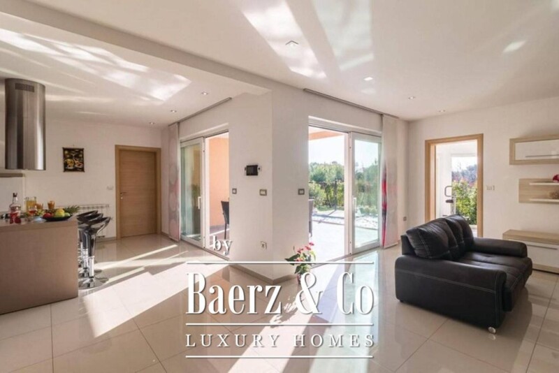 This beautiful villa is for sale in one of the most sought-after locations in the city of Pula, located in a cul-de-sac and 900 m from the sea. The house of 460 m2 provides comfort and is stylishly designed to suit a modern lifestyle. Considering the two separate entrances, it offers more possibilities, such as an additional apartment next to the main part of the house, which currently serves as an office equipped with a kitchen. While the main part of the house offers an entrance area and a spacious living room with kitchen and dining room that communicate with a large terrace with garden furniture. There is also a wellness area on the ground floor with a view of the swimming pool and greenery through large glass walls. The pool is 48 m in size, of which the children's part is 0.5 m deep and the adult part is 1.5 m deep, and it has a hydromassage. The activity area extends through the entire basement of the house, and there is also an additional kitchen and a fireplace that completes the experience. In the basement there is also a garage with 2 parking spaces and 5 bicycles, while the fully fenced plot offers the remaining 4 parking spaces. On the first floor of the house there is a study, four bedrooms with private bathrooms and access to the terrace and one room in the attic. The house is air-conditioned, and all rooms have central heating. Apart from the internal staircase, the floors are interconnected by an elevator. Large covered terraces are another feature of this building. The house is located a 3-minute drive from the first beach, as well as all other interesting facilities, as well as the center of ancient Pula, which is rich in cultural and historical sights. For more information, feel free to contact us.