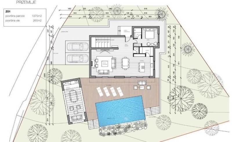 Villa under construction in Lindar, Pazin - newly built and stylish! Total area is 180 sq.m. Land plot is 1000 sq.m. It is luxury villa combining modern architecture and Mediterranean style! Future owners have the opportunity to participate in the construction of this beautiful Mediterranean villa and express their wishes and influence the cost estimate.There is also the possibility of building up to the ROH BAU phase. The villa is located in central Istria, between the Istrian towns of Gračišće, Lindar and Žminj.It is located on a hilly terrain in the middle of a tame Istrian oak forest.The location is ideal for those who love nature and peace.The climate here is dry and healthy, and the nights are pleasant despite the intense heat during the summer.It was conceived as a combination of modern architecture and traditional Mediterranean stylesimple lines, built with modern and traditional materials such as stone,wood and concrete. The villa has two floors.The living spaces of the house come into direct contact with the surrounding terrain through the outdoor terracesand have a beautiful open view of nature and a swimming pool from the ground floor and first floor.The design of the planned villa is an elongated rectangular floor plan with pergolas and canopieson the south side. The villa consists of an entrance hall, living room, kitchen, dining room, three bedroomswith three bathrooms, a toilet, and a utility room. The ground floor consists of an open living room with kitchen and dining room,economy and toilet, and bedroom with bathroom,The first floor consists of two bedrooms, each with its own bathroom. The floors are parquet.The ground floor has an exit to the terrace with an open view of the swimming pool. Space heating and drinking water preparation is provided by a central system using system consisting of a heat pump.Energy is electricity.The building will have a wood-burning fireplace with an open hearth in the living room the desired ambient impression has been achieved.Floor heating is provided in all bathrooms.The swimming pool area is 50 m2. The edge of the swimming pool is paved with stone, and the inside of the swimming pool it is paved with mosaic tiles. The sun deck around the pool is covered with stone. The team of architects designed the above concept, but there is a possibility of any modification by the future owners. Ref: RE-U-22392Overall additional expenses borne by the Buyer of real estate in Croatia are around 7% of property cost in total, which includes: property transfer tax (3% of property value), agency/brokerage commission (3%+VAT on commission), advocate fee (cca 1%), notary fee, court registration fee and official certified translation expenses. Agency/brokerage agreement is signed prior to visiting properties.