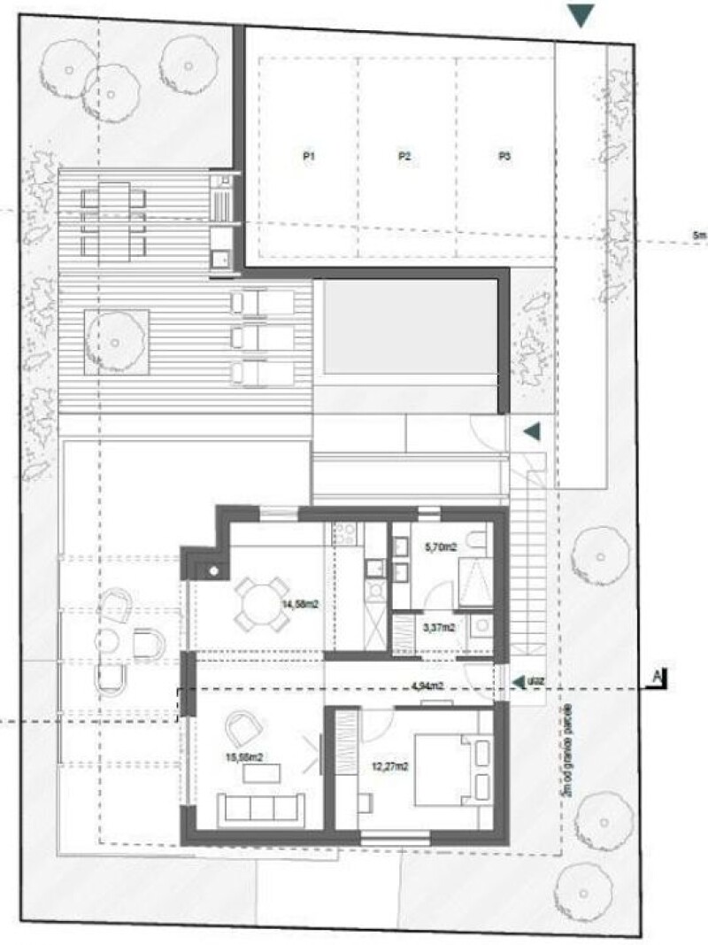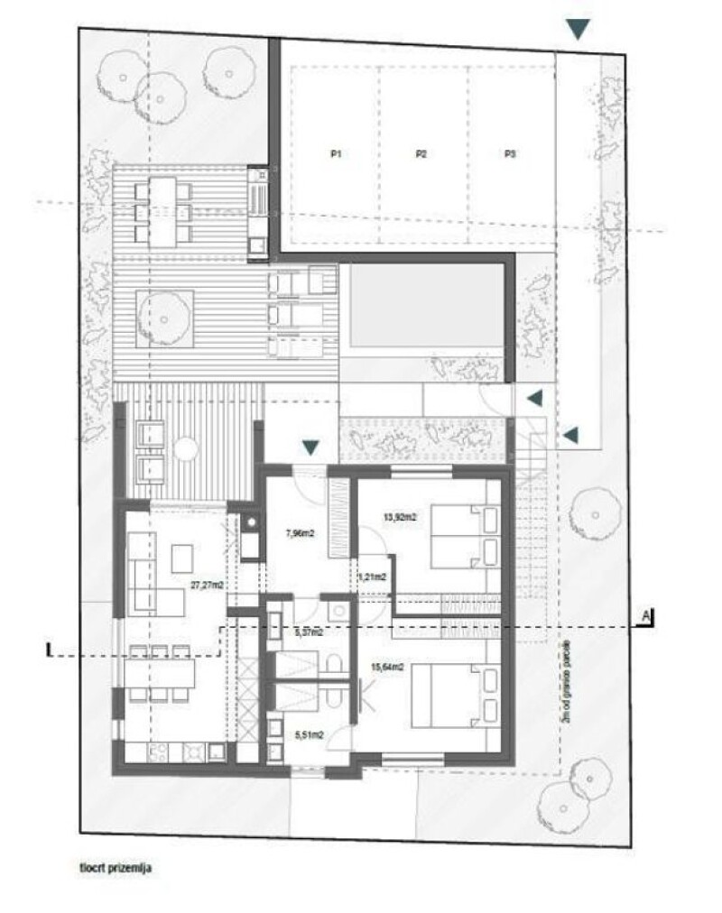 Elegant villa under construction on the island of Vir in a great location 600 meters from the sea and the beach. The island of Vir is 25 km away from the city of Zadar and is connected to the mainland by a bridge to the mainland, so it can be considered a peninsula. It is one of the 300 islands and islets of the beautiful Zadar archipelago. The villa with a living area of 191 m2 is under construction and is located on a plot of land of 355 m2. It consists of ground and first floor. On the ground floor there is a kitchen with a dining room, a living room, a bedroom with its own bathroom, a second bedroom, a second bathroom, an entrance hall and a terrace. On the first floor there is a large kitchen with a dining room and a living room, a bedroom, a bathroom with a laundry room, an entrance hall and a large terrace. A swimming pool with salt sea water with an area of 19.65 m2 and a depth of 1.3 m is planned. Next to the pool there will be a machine room for the pool technology, which will also house the internal unit of the heat pump. The rooms will be heated and cooled with the installation of wall-mounted split air conditioners and pellet fireplaces. There is a building permit for the house with all fees paid for the communal contribution, water contribution and electricity connection. This elegant, modern villa was designed by the renowned architectural studio 4uHa from Zagreb. The construction of the villa has not yet started, so it is currently possible to buy land with a project and building permit at a price of €350,000. The price of the finished house with a use permit is €600,000. Ref: RE-LB-IRO1671Overall additional expenses borne by the Buyer of real estate in Croatia are around 7% of property cost in total, which includes: property transfer tax (3% of property value), agency/brokerage commission (3%+VAT on commission), advocate fee (cca 1%), notary fee, court registration fee and official certified translation expenses. Agency/brokerage agreement is signed prior to visiting properties.