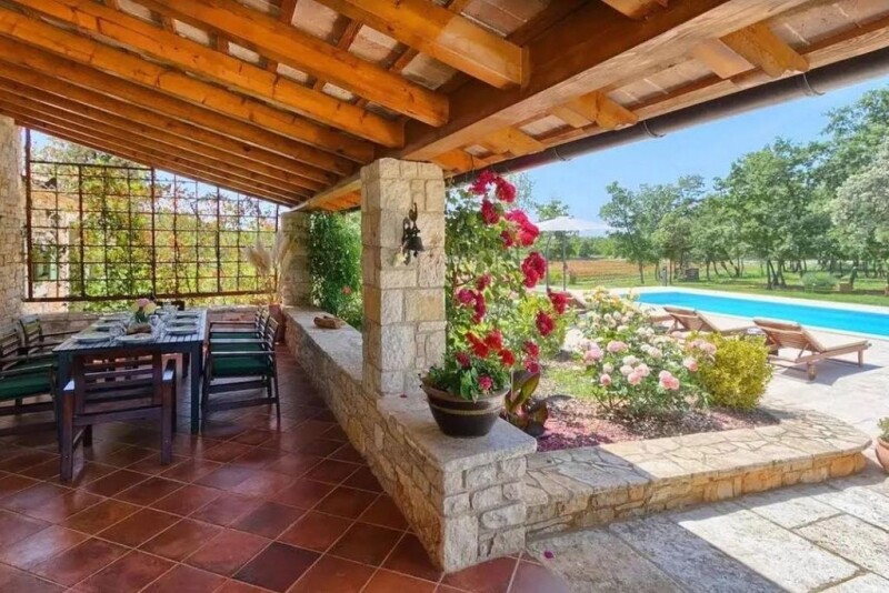 Authentic Stone Villa with Pool - Exceptional Privacy on a 3-Hectare Estate! This beautifully restored stone villa of 224 sq.m. offers outstanding privacy on a spacious 3-hectare estate, nestled in a serene and picturesque location between Bal and Rovinj. Just 3 km from some of Istria’s most stunning beaches, this property is the perfect retreat for those seeking luxury and tranquility in a unique setting. Villa Details: Bedrooms: Three generously sized bedrooms, each with its own en-suite bathroom, ensuring privacy and comfort.Living Room: An open-plan living area featuring a large fireplace, perfect for relaxation and social gatherings. The living room leads out to a spacious covered terrace, ideal for outdoor enjoyment.Kitchen and Dining Area: A large kitchen, seamlessly connected to the dining area, is equipped with top-quality materials, providing the perfect space for meal preparation and dining.Terrace: Expansive covered terrace with direct access to the pool.Outdoor Features: Pool: A 44 m² swimming pool, surrounded by a sunbathing area paved with natural stone, offers an ideal space for relaxation and refreshment.Auxiliary Building: A renovated 44 m² auxiliary building, perfect for use as a luxurious tavern or a separate apartment.Kažun: A traditional 20 m² Istrian dry-stone structure, adding authenticity and character to the property.Estate Features: Surroundings: The property is fully fenced and meticulously maintained, featuring a blend of natural elements:Oak Forest: A clear oak forest providing natural shade and tranquility.Olive Grove: A large, mature olive grove that enhances the Mediterranean ambiance.Lawn and Garden: Flat, well-maintained lawns and a small eco-friendly vegetable garden with irrigation, ideal for growing fresh produce and herbs.Additional Information: Materials and Details: The renovation utilized only the highest quality materials, incorporating reclaimed beams and channels from old Istrian buildings to preserve the villa’s authentic charm.Sale: The villa is offered fully furnished and move-in ready.This villa represents a rare opportunity to acquire a luxury property that offers not only unparalleled comfort and style but also exceptional privacy in one of the most beautiful regions of Istria. It’s perfect for those who wish to enjoy the serenity of nature while still being close to all necessary amenities and stunning beaches. Ref: RE-AB-MA-32Overall additional expenses borne by the Buyer of real estate in Croatia are around 7% of property cost in total, which includes: property transfer tax (3% of property value), agency/brokerage commission (3%+VAT on commission), advocate fee (cca 1%), notary fee, court registration fee and official certified translation expenses. Agency/brokerage agreement is signed prior to visiting properties.