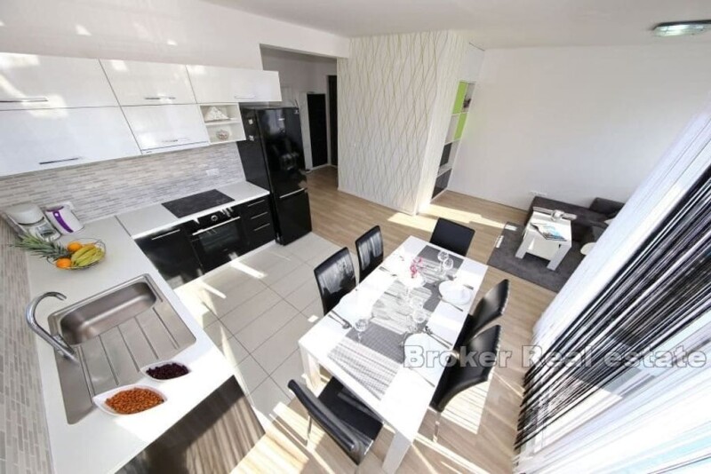 A modern, beautifully decorated house near Zadar is for sale. The house is located only about 15 kilometers from the center of Zadar and is located on a plot of land measuring 820 m2. The property has an external parking lot and swimming pool within the garden, while the house itself occupies 240 m2. The house consists of four separate modern apartments. All four apartments are spread over two floors, the ground floor and the first floor, and have a separate entrance. All apartments consist of a kitchen and dining room, a bedroom and a bathroom. Two apartments have two bedrooms, while the other two have one each. All apartments are equipped with air conditioning units for the heating and cooling system. The apartments are modernly furnished and are currently rented and used for tourist purposes. For the last few years, the apartments have had excellent business and seasonal success. For this reason, this property is an excellent opportunity for investment and continuation of business.
