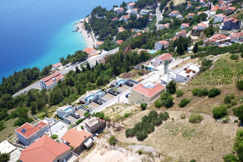Attractive plot with project and building permit boasting spectacular sea view This unique plot with a project occupies a total area of 1.200 square meters, and it is located on a hill in one of the most popular towns on the Omiš Riviera, offering a spectacular panoramic view of the sea and the nearby islands. The Omiš Riviera is one of the most popular tourist destinations in Dalmatia. It is widely known for its natural beauty, crystal clear sea, beautiful beaches and coves, rich historical and cultural heritage, and diverse tourist and gastronomic offers. The plot includes a project for constructing four luxury villas designed to blend in perfectly with the natural surrounding. The building permits have already been obtained, and all contributions have been paid. A well-maintained road leads to the plot, while the complete infrastructure is next to it. The project design was thoroughly done, and the cascading construction allows an open sea view from every floor. The living space of all villas is elegantly distributed over three floors (ground floor, first floor, and second floor), and the highlight of all villas is a rooftop terrace with a swimming pool. The parking lot is envisaged at the plot’s highest point, from where the stairs will lead down to the villa. The villas are designed to fit perfectly with nature; therefore, a cascading garden is planned next to each villa, providing a pleasant feeling of harmony with nature and is a luxurious asset to each villa. Considering the attractive location and the great potential of the land, this plot represents a unique and rare investment opportunity. It is ideal for constructing an exclusive Mediterranean oasis in one of the most alluring seafront settings on the Adriatic, providing a luxurious vacation in a beautiful environment with a first-class view of the sea, maximum comfort, and complete privacy. There is a possibility to purchase individual plots with or without a project.