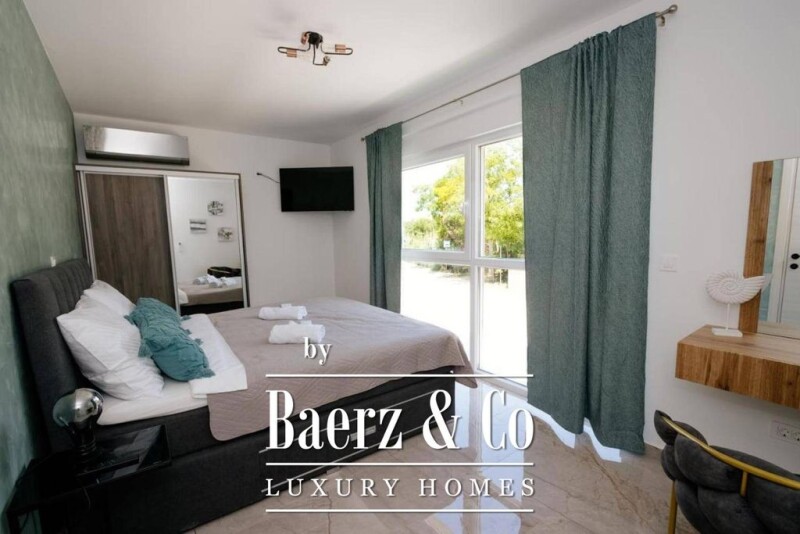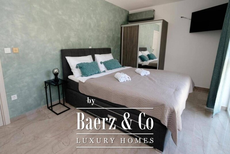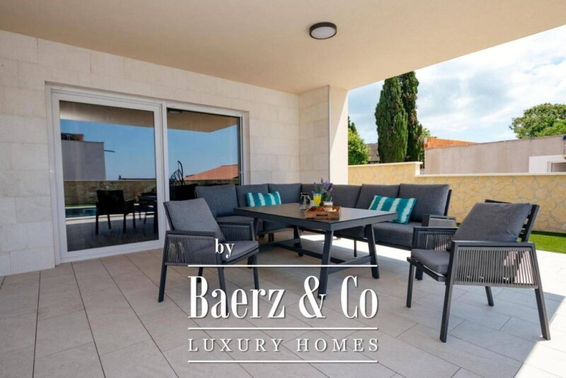 Only 5 minutes drive from the city center is this beautiful villa surrounded by nature, greenery, and houses for living or vacationing. The modern two-story house with 150 m2 of living space consists of an open space room in which a modern and equipped kitchen with a dining area and a sunny living room ideal for socializing with family and friends are perfectly integrated, two bathrooms and equally separated from the space for daily life are located are three bedrooms, two of which are located on the floor connected by an internal staircase. One of the bedrooms provides communication with its own covered terrace, while a special part of the property is an additional terrace of 35 m2 which is accessed from the corridor. Decorated with seating and a jacuzzi, it provides an additional hedonistic atmosphere. From the ground floor, there is a direct exit to the outdoor covered terrace, a 32 m2 swimming pool, a sun deck, and the rest of the garden, where there are also three parking spaces. The property is equipped with air conditioning as well as underfloor heating via a heat pump and is sold fully furnished. During construction, the current owners paid attention to every detail, and the villa will certainly not leave you indifferent, it is ideal for all those who want their own private corner of paradise in a peaceful environment, but can still enjoy a relaxed and modern lifestyle close to various shops, restaurants, cafes, promenades and much more. But it also represents an ideal opportunity for all those who are looking for the option of their own tourist investment with a safe return on investment. Feel free to contact us for more information.