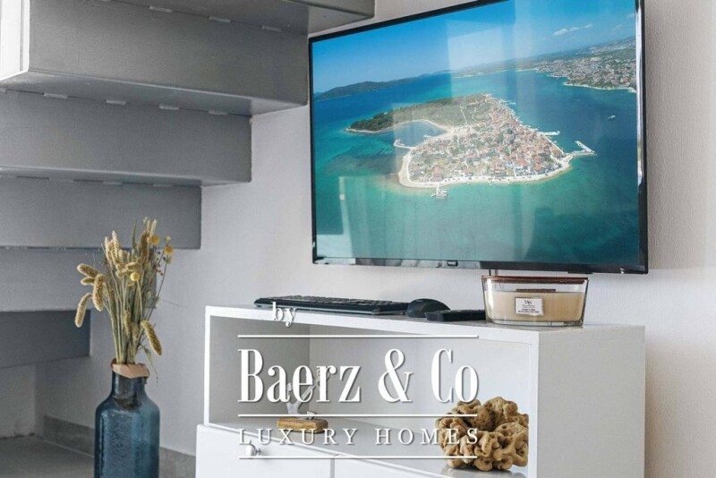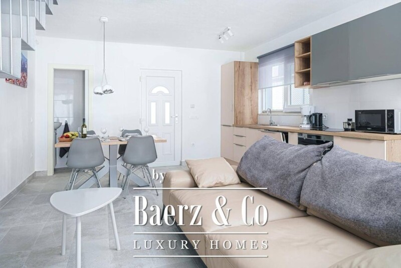 Krapanj islans, stone house first row to the sea, Net usable area 70 m². The house was built in 2022 and is located only 15 meters from the sea. The house is fully furnished and is being sold ready for use. Built on 3 floors (ground floor + 2 floors) on a plot of 36 m². It consists of a ground floor with a kitchen, a living room and a dining room, and a bathroom. On the first floor there is a bedroom with a bathroom and a terrace. On the second floor is a bedroom with a toilet. The house was built on the site of an old stone house, so the buyer gets the location of the center of the town and the quality of a modern house. There is also an outdoor shower next to the house. The island of Krapanj is only 350 meters away from the mainland, and is connected by a boat line that goes every half hour. We are at your disposal for all other information.