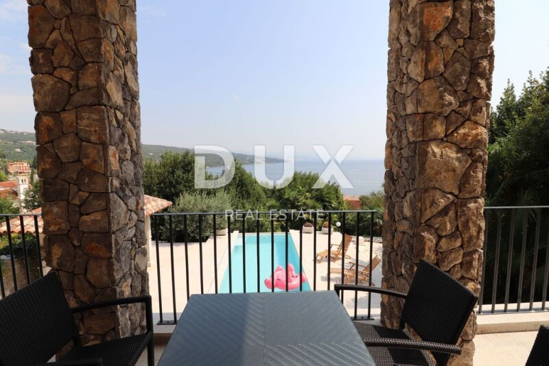 Volosko is a small fishing village near Opatija, known primarily for its top restaurants. Right here for sale we offer you a beautiful detached house with a swimming pool, just a few steps away from the sea, promenades and famous restaurants in Volosko. The house consists of ground floor and first floor which are connected by internal and external stairs. The living space on the ground floor is designed as a living area where the kitchen, dining room and spacious living room are located. Upstairs are four rooms, two of which are currently used as bedrooms, and the remaining two as a library and cloakroom. All rooms are paved with stone - indigenous Kastav gray. In the basement there is a small apartment, ideal for hosting friends or family and a tavern for socializing. In front of the house on the terrace, next to the sun deck, there is an infinity pool with a beautiful sea view. There are also three covered parking spaces in the yard. The family villa in a great location in picturesque Volosko is an ideal home for all those who want to get away from the crowds and noise of the city centers, but also close to all important facilities. Patrik Hrštić Agent s licencom E- www.dux-opatija.com VOLOSKO - beautiful family villa with pool and landscaped garden.