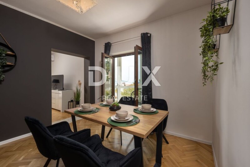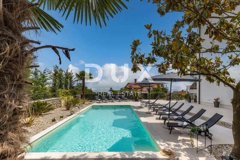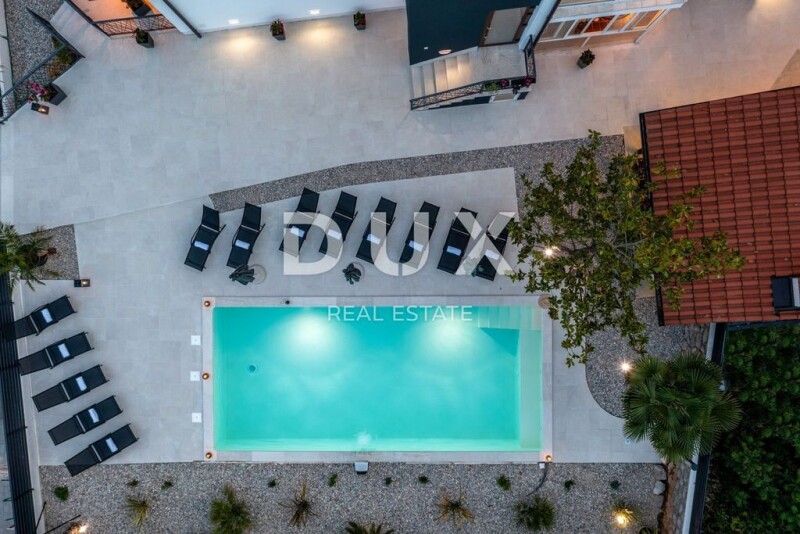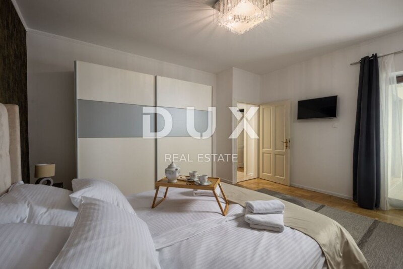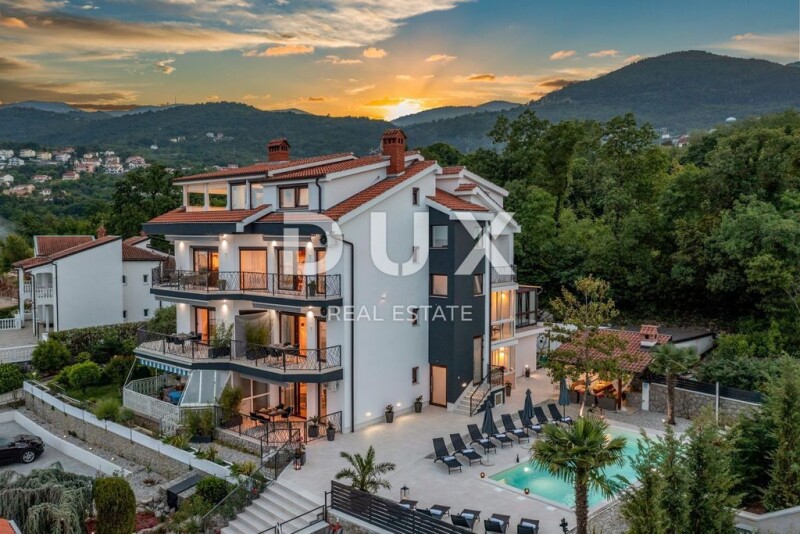 OPATIJA, IČIĆI - unique floor 190m2 in a quiet street with a swimming pool and a view of the sea In the exclusive Dux offer we highlight a unique floor in a newer building. It is an apartment on the first floor of the house with a total net size of 190m2. The floor consists of 4 bedrooms, only 4 bathrooms, two kitchens, two living rooms, two balconies on the side that are connected to two bedrooms and a large south-facing terrace with a direct view of the sea. The building is of recent construction, and insulation and a new facade were installed in 2022. A completely new garden, a classy communal pool and an oasis for enjoyment were also built. The apartment is equipped with selected furniture, everything is decorated in a designer way and the spaces generally leave one speechless. The floor has a private area for relaxation where there is a sauna and deckchairs. The house is located in a private street, with constant peace, privacy, and a view of the sea. The facility is located 700m from the sea as the crow flies, 2 minutes by car from the beach or 10 minutes on foot downhill. A truly valuable, beautiful property that is a rarity on the market as such. Dear clients, the agency commission is charged in accordance with the General Business Conditions: www.dux-nekretnine.hr/opci-uvjeti-poslovanja Marko Šutanovac Agent s licencom E- www.dux-opatija.com OPATIJA, IČIĆI - unique floor 190m2 in a quiet street with a swimming pool and sea view.