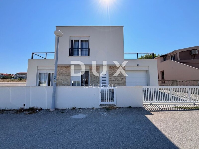 VIR ISLAND - Modern house with swimming pool, 100m from the sea! A luxurious, modern house for sale, newly built on the island of Vir in an exceptional location - 100 m away from one of the most beautiful beaches on the island, and the position of the house is additionally attractive because there are streets on three sides of the plot with a total area of 370 m2, while the house itself is on the fourth side more than 3 m from the neighboring house. The house consists of a garage (19.6 m2) and a residential part on the ground floor (residential part 48 m2 + terrace 68.10 m2) and on the first floor (area 53 m2 + balcony 36.10 m2). The ground floor consists of an entrance area, a storage room, a toilet and an open area where the living room, kitchen and dining room are located. The ground floor leads to two spacious terraces, on the south and north. On the first floor there are two balconies with an unobstructed view of the sea, a bathroom and three bedrooms, one of which has its own bathroom and a beautiful view of the sea. The air conditioning system is designed so that each indoor unit has its own outdoor unit. The house has a chimney and underfloor heating in the bathrooms. Among the equipment, we highlight top-quality ceramics (Ceramiche Piemme), first-class parquet made of bleached, brushed oak (Tarkett), Trogir plano stone, Rehau PVC carpentry with blinds and mosquito nets, Laufen and Aquestil sanitary ware, Hörmann garage door with remote control. The flat roof is made with the Draco system, the Benkovac Ben stone is on the facade, thermal insulation is 10 cm and 20 cm thick, which, in addition to the high-quality construction system, enables the A+ energy class. The house will have a swimming pool, and it is possible to park an additional 2 vehicles on the lot. The house offers an unobstructed view of the sea and the island of Pag. The orientation of the house is east-west. The house is being sold completed, and the planned completion of construction is May 5, 2023. Dear clients, the agency commission is charged in accordance with the General Terms and Conditions: www.dux-nekretnine.hr/opci-uvjeti-poslovanja Sara Večeralo Agent s licencom E- www.dux-dalmacija.com VIR ISLAND - Modern house with swimming pool, 100m from the sea!.