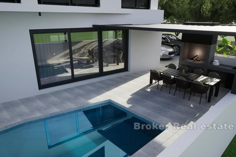 Located in a tranquil location just moments from the glittering coastline, this stunning villa under construction promises to epitomize luxury waterfront living. Spread over two impeccably designed floors, the residence boasts a generous total area of 187 square meters, ensuring ample space for comfortable living. Step into the ground floor, which covers 90 square meters, and discover a harmonious combination of functionality and elegance. Here, the carefully appointed bathroom offers practical access from inside and outside, while a dedicated 10 square meter space awaits transformation into your personal sauna sanctuary. The spacious living area provides for a modern kitchen, dining room and an inviting sitting room with access to the outdoor garden oasis, perfect for outdoor entertaining or relaxation. Climb to the upper level covering 97 square meters and indulge in the ultimate retreat. Four sumptuous bedrooms, each complemented by its own luxurious bathroom, provide refuge and comfort for all. On the roof terrace, there is a small storage room and a fireplace that complete this special outdoor space that offers privacy and a panoramic view of the sea. There is a 30-square-meter heated swimming pool with a sunbathing area, a corner with another fireplace and a practical parking lot in the garden. Equipped with state-of-the-art facilities, including the latest heat pumps and underfloor heating, this villa ensures comfort and luxury all year round. Aluminum windows with SunGourd glass not only increase energy efficiency, but also provide protection from the elements, ensuring lasting quality and style. In addition to offering a private retreat, this property presents an attractive investment opportunity for a lucrative tourist rental. Located only approximately 30 kilometers from the historic city of Zadar and Zadar Airport.