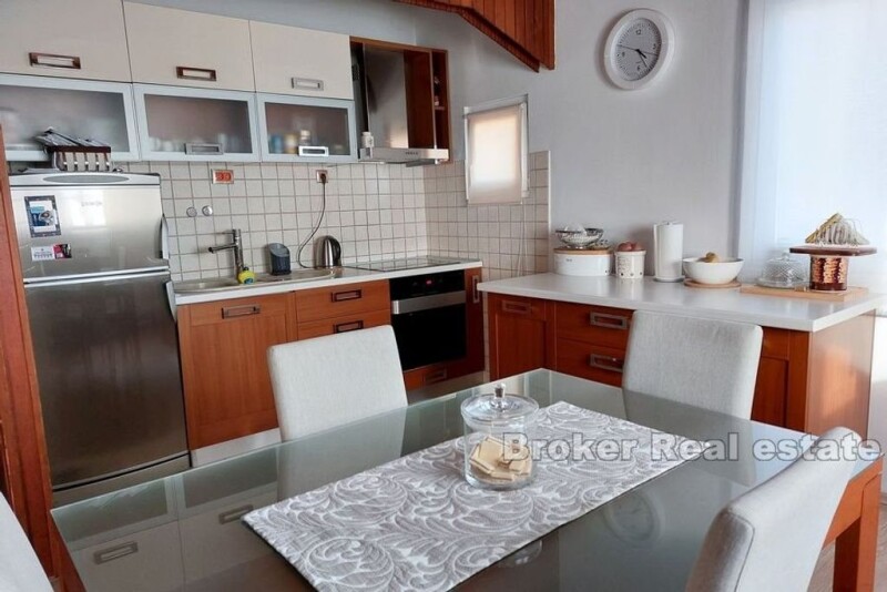 House near Split with open views of the sea and the island of Brac. The property with a living area of 630 m2 is spread over three residential units. The building is divided into two parts. The first has a basement and a garage and there is one apartment in it. The second part of the house consists of a basement with a garage and two apartments, one of which is duplex. Each apartment has a spacious terrace with a fireplace and a beautiful sea view. In the basement there is a boiler room for central heating. The garden of 444 m2 offers enough space for a beautiful garden or building a swimming pool. The house is located in a quiet neighborhood 11 km from center of Split. Distance from the sea is 800 m.