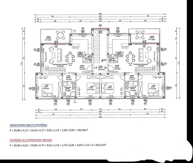 Building of the 4 apartments with swimming pool in Tar, Tar-Vabriga under construction, 5 km from the sea! Villa benefits distant sea views! Total area is 538 sq.m. Land plot is 753 sq.m. Construction should be completed in 2023. This building is being built with 4 residential units and a swimming pool. Each of the 4 residential units has a sea view.Two apartments are located on the ground floor, and two apartments are located on the first floor. Ground floor:Two apartments, each with an area of 73.45 m2 + terrace area of 11.60 m2 Upper floor:Two apartments, each with an area of 112.47 m2 + two terraces with a total area of 69.05 m2 The net area of all the apartments is 538 m2.The apartments on the ground floor have a hallway, kitchen, living room, two bedrooms, bathroom, toilet, storage room and a large terrace.The apartments on the first floor have a hallway, kitchen, living room, four bedrooms, bathroom, toilet, storage room and a large terrace. There will be a communal swimming pool in the garden. The building has all the necessary documentation and permits. Due to its proximity to the sea and all amenities for life, this property is ideal for family life in combination with a tourist rental, which would ensure a quick return on investment Ref: RE-U-20947Overall additional expenses borne by the Buyer of real estate in Croatia are around 7% of property cost in total, which includes: property transfer tax (3% of property value), agency/brokerage commission (3%+VAT on commission), advocate fee (cca 1%), notary fee, court registration fee and official certified translation expenses. Agency/brokerage agreement is signed prior to visiting properties.