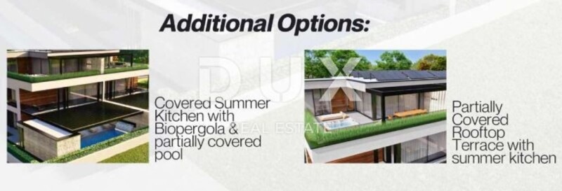 ISTRIA, POREČ - Unique villa with four separate residential units Bathed in a pleasant Mediterranean climate in the heart of the western Istrian coast, the ancient town of Poreč and its coastline, landscaped parks, pine and oak forests that reach the immaculately clean sea, beaches, bays and islands, spreads over an area of 139 km² and consists of 58 settlements. With the identity of an urban coastal city - Poreč is a city of culture, sports, entertainment, tourism and true hospitality. Poreč - a city tailored to the needs of a person. Dux real estate agency offers an exclusive villa with as many as four spacious residential units, each of which covers 80 m2 of living space. The unique location with direct views and access to the sea will not leave anyone indifferent. Each apartment in the villa consists of two bedrooms, a spacious living room with a kitchen and dining area in an open space concept, as well as a toilet and an additional toilet. Two apartments are located on the ground floor and have their own garden with a swimming pool, while the other two are located on the first floor of the villa. What makes this villa special is the large roof terrace that extends over almost 160 m2 and offers a captivating view of the beautiful clear sea. The terrace also contains an outdoor wellness area with massage tubs and various plants for an even better and more pleasant stay on sunny days. The building is located within walking distance from the sea - only 1 km to the first beautiful beach, which is reached by a well-maintained walking path. A reliable and well-known investor offers further maintenance, which is certainly an advantage. There is also the option of purchasing just one apartment. Whether it is an investment related to renting or a pleasant family life, this property is certainly worth considering. Contact us with confidence! Dear clients, the agency commission is charged in accordance with the General Terms and Conditions: www.dux-nekretnine.hr/opci-uvjeti-poslovanja Tina Širol Agent s licencom E- www.dux-istra.com ISTRIA, POREČ - Unique villa with four separate residential units.
