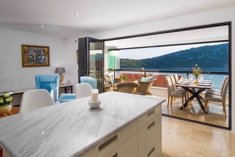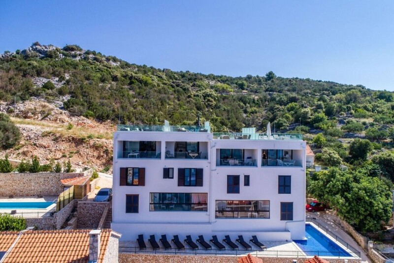 Apartment Sunray is a stylish apartment situated on the ground floor of a contemporary residential building, which has flawlessly blended with the view of the sun-kissed Dalmatian coast. It is located in an attractive location in a picturesque seaside village near Trogir, just a few steps from the crystal clear sea and the beach. The Trogir Riviera has become a popular tourist destination and is widely known for its idyllic beaches, hidden coves, and almost untouched nature. Apartment Sunray extends over 80 square meters of living space, offering absolute comfort, privacy, and a spectacular sea view. It comprises an open-concept living area with a spacious living room, a fully fitted kitchen with an island, and a dining area. This space, bathed in sunlight, opens to a spacious loggia through the glass wall, which invites you to relax and enjoy the scenic view of the sea and almost untouched nature. The apartment also features two elegant, spacious bedrooms, a bathroom with a double sink and a walk-in shower, a toilet, and a storage room. It has a garage and an outdoor parking space. There is a spacious swimming pool with built-in steps for children (shared by all apartments) and a sundeck with sunbeds for extra comfort. The superb contemporary elegance of apartment Sunray ideally complements the Mediterranean landscape, allowing you to indulge in the easygoing ambiance and exclusive modern amenities. It is located near the International Airport in Split and one of the most beautiful marinas in this part of the Adriatic – Marina Frapa in Rogoznica. It represents a perfect starting point for exploring the city centers of Trogir, Sibenik, and Split, inscribed on the UNESCO World Heritage List, or simply enjoying the peaceful surroundings and beautiful beaches. Apartment Sunray is a unique property that allows absolute enjoyment and is ideal for all admirers of the Mediterranean lifestyle. It is a pleasant year-round residence or holiday home with great potential for a tourist rental business.