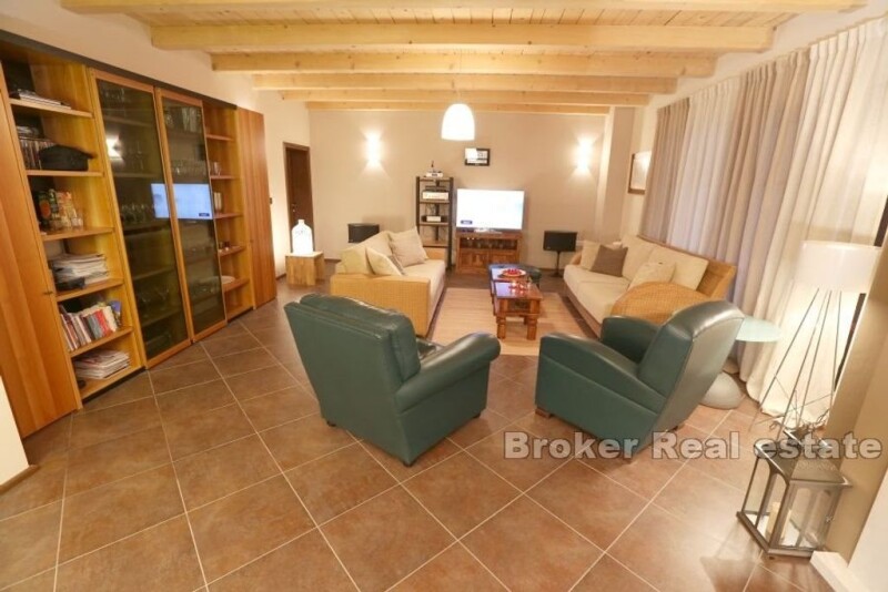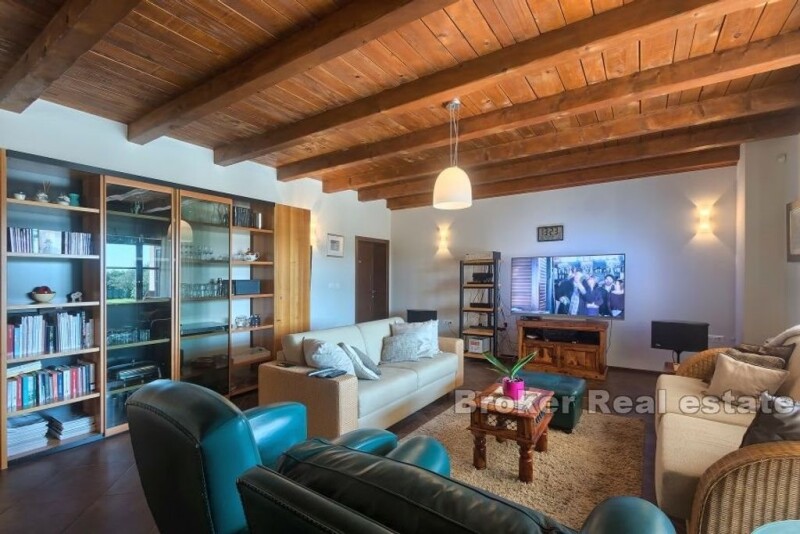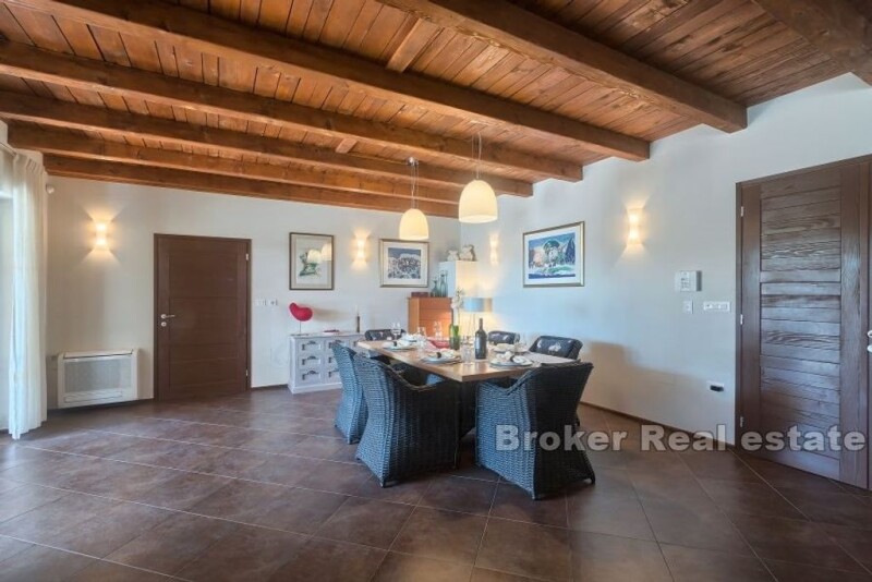 A modern villa located near Pula, 10 km from the sea and 18 km from the center of Pula. It was built in 2013. It is located on a total area of 1986m2, of which it is residential area 400m2. In the basement of the villa, there is a 64m2 social space and a storage room. It is located on the ground floor living room, kitchen, bedroom with bathroom and access to the terrace, open space with barbecue and summer kitchen, laundry room and toilet. The first floor consists of two bedrooms, of which each has its own bathroom and access to its own terrace. In the yard there is a 66m2 swimming pool, a terrace with a summer kitchen and an open garden. The property is surrounded by houses that are in the tourist business, and offers the possibility business or housing solution.