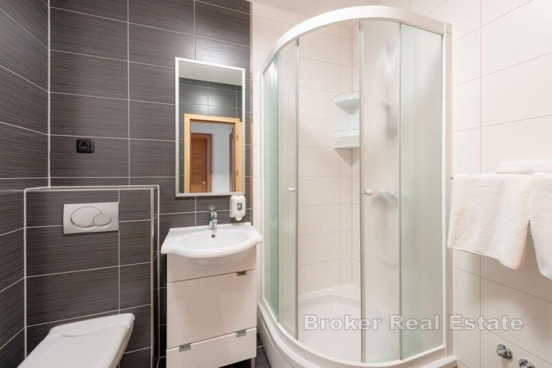 A modern holiday house for sale, only 120 meters from the sea and located in Tučepi, near Makarska and Split. It is positioned on the south side and exudes the highest comfort and modern interior. It offers a combination of traditional Mediterranean charm and comfort with a wonderful view of the Adriatic coast from every terrace/balcony. It was built on five floors. It consists of 16 apartments spread over individual floors and quality garden furniture with a grill for preparing delicacies, outdoor parking and a garage. It has a total of 31 rooms, 16 bathrooms, 8 living rooms, 14 kitchens/dining rooms and numerous terraces and balconies. In the basement there are 3 large garages and a large part of the space for outdoor parking for 16 vehicles. There are 5 apartments on the ground floor, each of which has a bathroom, kitchen/dining room + living room, 2 bedrooms and a balcony. On the first floor there are 4 apartments, of which 1 apartment has a bathroom, kitchen/dining room + living room, 2 rooms and a balcony, and the other 3 apartments (each of them) have a bathroom, kitchen/dining room, 2 rooms and a balcony. On the second floor there are also 4 apartments, of which 2 apartments have a bathroom, kitchen/dining room + living room, 2 bedrooms and a balcony, and the other 2 apartments (each of them) have a bathroom, kitchen/dining room, 2 bedrooms and a balcony. On the third floor there are 3 apartments, of which 2 apartments (each of them) have 2 rooms, a balcony and a bathroom, the other 1 apartment has a kitchen/dining room, 1 bathroom and a room with a balcony. The property is sold fully equipped and furnished with high-quality interior and exterior (home appliances, TVs, garden furniture…) It is fully air-conditioned. The building can be converted into a smaller boutique hotel due to the number of apartments and beds. The property is a unique choice due to its southern position/Mediterranean climate, proximity to the sea of only 100 meters, modern equipment, numerous sandy beaches nearby. The place is 5 km from the nearest larger town Makarska and 70 km from Split airport.