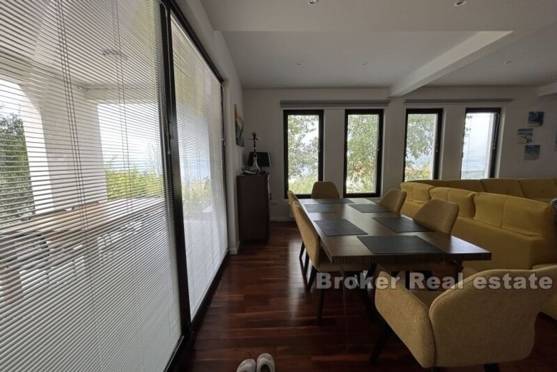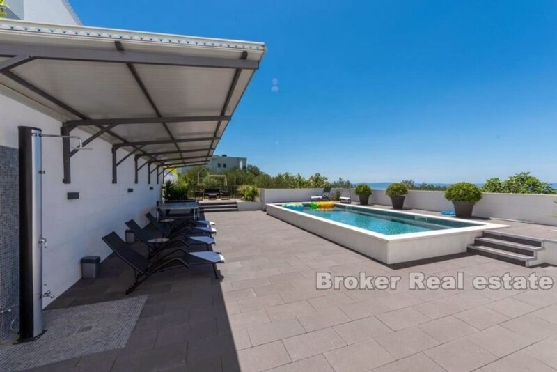 Luxury villa with a swimming pool located on a 690 m2 area with a total of 360 m2 of living space located at the foot of Biokovo with a wonderful open view of the sea. This villa combines luxurious design, comfort and privacy to provide an unforgettable stay for its guests. In the basement of this unique property, there is a wine cellar, a large storage tank and a gym with a sauna. On the first floor there is a spacious living room with a dining room and an exit to the terrace with an incredible view, a bathroom and a storage room. The special feature of this property is the height of the ceilings, which contribute to the feeling of spaciousness and luxurious atmosphere. On the second floor, there are three bedrooms with their separate bathrooms, and a central relaxation area ideal for social gatherings, with direct access to the terrace. This villa is an ideal choice for those who are looking for luxurious accommodation in a quiet environment, but also close to the attractions and activities that Makarska has to offer.