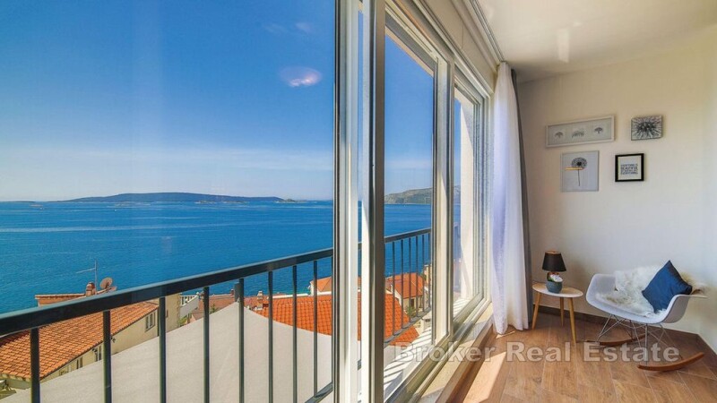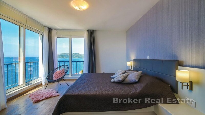 For sale is a luxuriously decorated villa with a total living area of 325 m2 on the island of Ciovo on a plot of 556 m2. The villa consists of 3 modern floors. On the first floor there is a sauna, jacuzzi and a large outdoor heated pool of 33m2. On the second floor there is a bedroom with bathroom, kitchen with dining area and a spacious living room with access to the outdoor terrace with a beautiful panoramic view. On the third floor there are 4 bedrooms, each with its own bathroom. The villa was built in 2018 and has a categorization of 5 stars, which confirms its status as a quality property with a top offer. The designer-equipped interior and the beautiful view from almost every room of the villa are a guarantee of everyday enjoyment. The property has 4 parking spaces. The villa is only 80 meters from the sea and 4 km by air from Trogir. It is 9 km from Split Airport. An excellent investment opportunity both because of the location and because of the exceptional quality it offers.