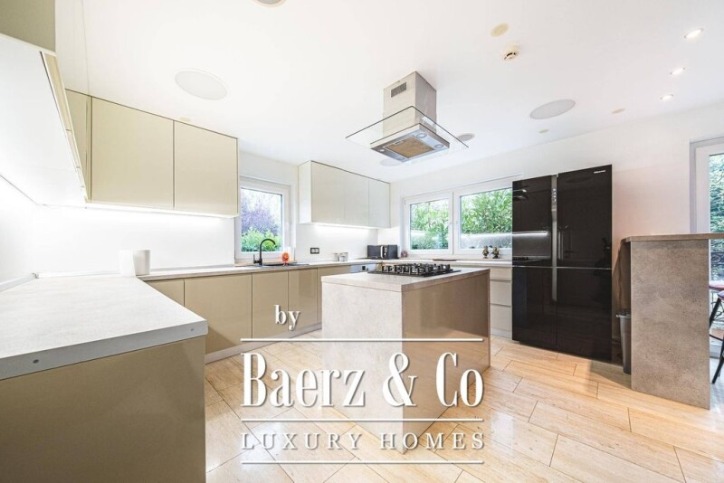 Beautiful family villa of 600m2 NPC is located at the edge of the green belt on Remetama. Extremely well built, equipped with swimming pool, sauna, wine cellar, large garage, and two lifts (economic and owners separate) ... Divorced three floors. Basement: garage for two cars, laundry, space for appliances, pantry, boiler room, wc, lounge with a wine cellar, wellness and fitness center, a swimming pool technology, storage for garden tools and the like. Ground floor: entrance hall, hallway, kitchen, bathroom, guest bedroom with bathroom, living room, dining room with fireplace, an outdoor terrace. Floor: master bedroom with bathroom, dressing room, terrace and adjoining gallery, three children's bedrooms, each with private bathroom and adjoining gallery and a terrace with two children's bedrooms. Access lane villa is heated, stone paved Kashmir white, access ramp to the garage heated with a non-slip finish, the outside terrace paved with ceramic tiles and stone and an outdoor terrace with barbecue, swimming pool with associated surface travertine tiled. Smart House (control heating, cooling, video surveillance ...), the indirect and direct lighting, chandeliers, Murano, floor and wall heating. The villa is ideal for residence and for business purposes.
