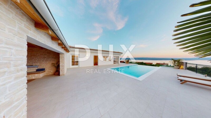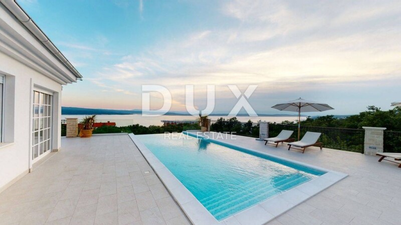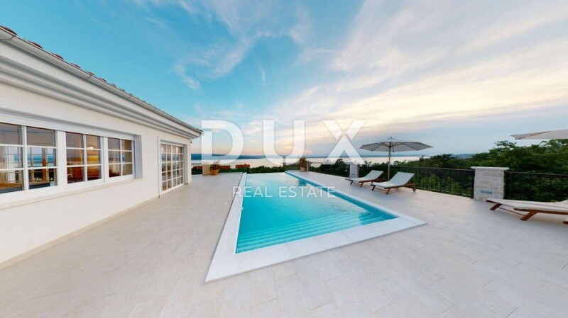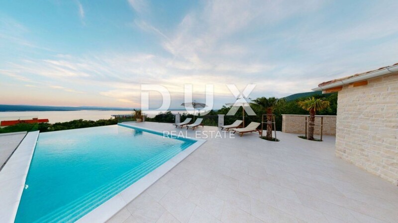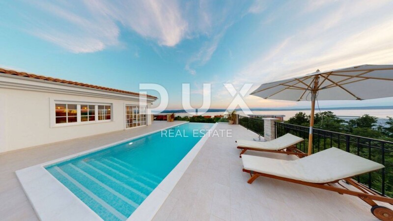 CRIKVENICA - Exclusive villa with a panoramic view of the sea Exclusive villa with panoramic sea view from all rooms. The property is located in the town of Crikvenica in a beautiful location 600 meters from the sea. A unique and one-of-a-kind property that includes a villa with two floors, a yard of 600 m2, a heated swimming pool of 40 m2 in which the entire system is automated, a double garage of 42 m2 and a multi-purpose outbuilding of 33 m2. The villa consists of a spacious living room with a kitchen and dining room, a covered terrace on the ground floor, a laundry room, a storage room, a boiler room, four bedrooms with their own bathrooms, a separate toilet, an additional fitness room and a terrace on the first floor. You can see the sea from every room. Top quality property built from porotherm and cement blocks with an additional insulating facade. It is equipped with air conditioning in every room, underfloor heating in the bathrooms, and a fireplace. In addition to the villa itself, future buyers can enjoy additional facilities such as a heated swimming pool, brick barbecue, tavern, etc. Certainly one of, if not the most beautiful property in the area of the Crikvenica Riviera. View the property with the help of an agent! Papers and ownership in order. Price to be agreed with the owners. Dear clients, the agency commission is charged in accordance with the General Terms and Conditions. Marco Matešković Agent s licencom E- www.dux-nekretnine.hr CRIKVENICA - Exclusive villa with a panoramic view of the sea.