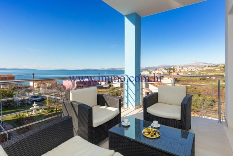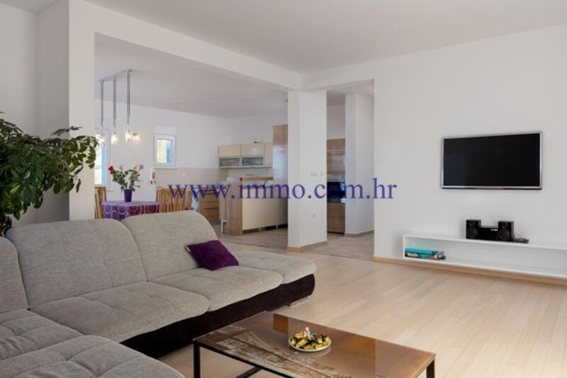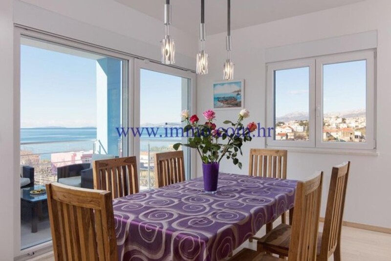 New villa for sale 358m2, situated on a quiet location at Podstrana, 100 m from the sea. It was built in 2013 and consists of basement and two floors. It is complitely furnished and well equiped. In the basement is gym with room for pilates, toilett and big storage. There is a hall with built-in wardrobe on the ground floor, as well as spacious room with billard and table football, kitchen with dining room, exit to terrace with seaview and two bedrooms - each with its own bathroom. On the first floor is a big living room with kitchen and dining room. First floor also has two terraces, a toilett and two bedrooms with its own bathrooms. The garden is beautifully landscaped, has a heated swimming pool area of 35m2, garden with a playground, an outdoor grill and parking spots for 4 cars. This villa guarantees peace and privacy and offers beautiful view of the sea and surrounding area. This villa guarantees peace and privacy and offers beautiful view of the sea and surrounding area. Additional information about the facility, its exact location and sightseeing is possible after signing a brokerage agreement with the agency that is in accordance with the Data Protection Act and the Real Estate Brokerage Act.