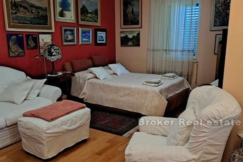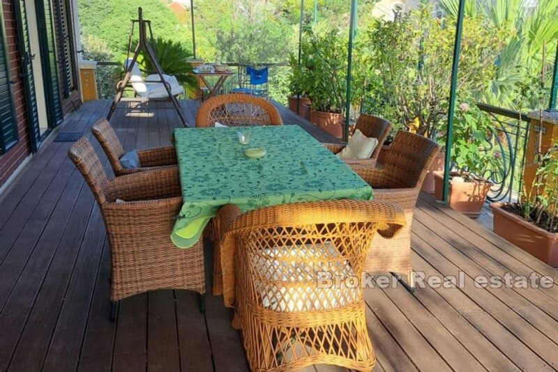 Exceptional, Art Nouveau designed and decorated apartment, approximately 77 m2, located on the second floor of an Art Nouveau villa with a rich history, oriented east-south-west. It consists of a spacious open plan living room with dining area, kitchen, hallway, one bedroom, bathroom with toilet, and a small additional toilet. The openness and airiness of the apartment are also contributed by the 3 meter high ceilings as well as large windows overlooking the city. The apartment has two exits leading to a spacious sunny terrace of approximately 76 m2 located on the south side of the apartment. The terrace is completely decorated and surrounded by planted Mediterranean horticulture. It has been turned into a real oasis of peace, with a sun deck, and a part for socializing and dinner with family and friends. In the immediate vicinity, there is the city center, shops, schools, kindergartens, bars, restaurants, and many other facilities that allow a comfortable life and a carefree vacation. Splitska Riva, Cathedral of St. Duje, as well as all other sights of the city of Split, are only a few minutes away by walk. This well-equipped and attractive apartment, with its exceptional position, peaceful and private atmosphere, provides a unique experience of life in the city and leaves the owner the opportunity for a successful tourist business.