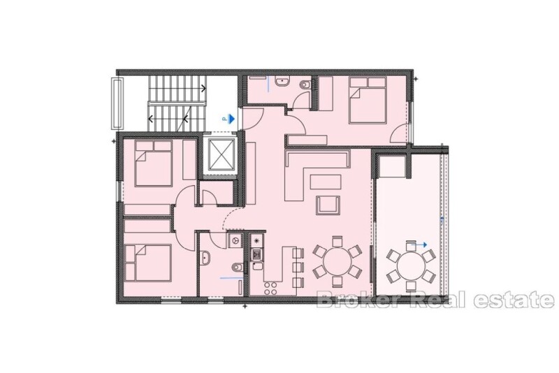 For sale is a modern apartment under construction with a sea view in Trogir, on Čiovo. It is located only 1,5 km from the center of Trogir and a few minutes' walk from all the facilities on the island that make it an attractive place. The apartment has a western orientation and is located in a semi-detached residential building with an elevator on the high ground floor. The apartment has 83,80 m² and consists of a hallway, storage room, three bedrooms, two bathrooms, kitchen, dining room and living room with access to the loggia of 18,60 m². There will be garage parking spaces in the basement of the building, which are paid for additionally. Heating and cooling will take place through air conditioner in each room and underfloor heating in the entire apartment and the pool will be for the common use of all tenants. The apartments are an excellent choice due to the proximity of all amenities and the airport, which is only 7 km away.