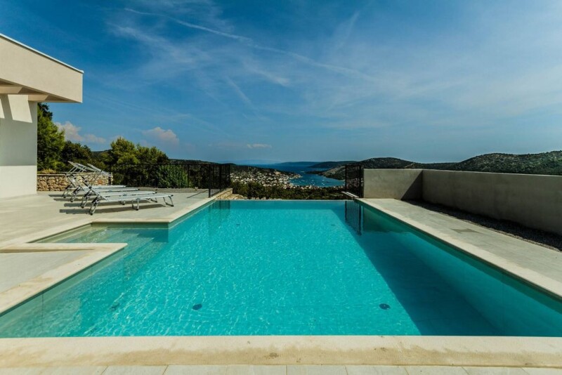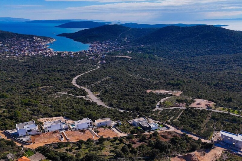 Nestled in an idyllic location near Trogir, Villa Naira is a true gem for those seeking tranquility and luxury on the picturesque Croatian coastline. Situated on a 625 m2 plot, Villa Naira extends over 180 m2 of living space, spread across two floors. Its elevated position ensures breathtaking, uninterrupted views of the Adriatic Sea, offering an unmatched ambiance of peace and beauty. The open-concept ground floor comprises a modern kitchen and dining area, a spacious living room with direct access to the terrace, bedroom, bathroom, hallway, storage, and toilet. The carefully designed outside area features a spacious terrace and a swimming pool with a sunbathing area, complemented by an outdoor shower. A summer kitchen and al fresco dining space make this terrace the perfect for gatherings with family and friends while soaking in the stunning sea views. The internal staircase leads to the upper floor, with three elegantly designed ensuite bedrooms and a terrace with panoramic views of the sea and lush indigenous landscapes. Villa Naira’s interior perfectly blends modern aesthetics with traditional Mediterranean elements. The careful selection of furnishings and decor creates a warm and inviting atmosphere, ideal for relaxing and enjoying the slower pace of coastal life. The lush garden, adorned with native plants and aromatic herbs, surrounds the property with natural splendor. Ample parking space accommodates multiple vehicles. Villa Naira is situated in an idyllic location near the historic cities of Split and Trogir, both UNESCO World Heritage Sites, and just a short drive from the international airport, making it easily accessible for travelers. Whether you are seeking a serene escape, a vibrant vacation destination, or a lucrative investment, this stunning property promises to exceed your expectations. Its unparalleled sea views and proximity to cultural landmarks, beaches, and essential amenities make it the ideal choice for all who want to enjoy the easy-going Mediterranean lifestyle.