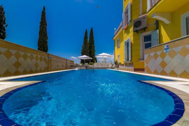Location: Crikvenica Built: 1930 Renovated: 2003 Crikvenica center: 4 km Sea: 0.1 km Airport distance: 25 km Inside space: 1900 m2 Plot size: 1440 m2 Bedrooms: 27 Bathrooms: 27 Swimming pool: 40 m2 Parking: 12 Air-conditioner Cameras Patio Garden.