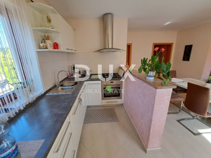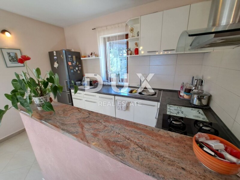 OPATIJA, VEPRINAC - family villa with sea view In the offer of the DUX agency, we highlight a top-quality, newer building located in a quiet side street on a plot of land of 1498 m2. The villa is located on a plot of 837 m2, while next to it there is another 661 m2 of construction land with a regular square shape. It is 1200 meters away from the sea as the crow flies. The beach in Ičići and the center of Opatija can be reached in approximately 20 minutes by car. The villa contains two fully furnished apartments. The apartment on the ground floor, with a total usable area of 84 m², consists of a hallway, a kitchen with a dining room and a living room, a bathroom and one bedroom. From the bedroom and the living room there is access to the balcony and loggia. On the ground floor there is also a garage of 35 m², which, with a minor intervention, can be connected to the existing apartment and thus obtain a larger living space. The apartment on the first floor with an area of 122 m² is entered without stairs, thanks to the configuration of the terrain. The apartment includes a hallway, a kitchen with a dining room and a living room, three bedrooms, a bathroom, a separate toilet and a storage room. Two bedrooms and the living room have access to the balcony and terrace. From the living room you can access the loft (total area 100 m²), which needs to be renovated. In the basement there is a tavern of 40 m² and a storage room of 10 m². Heating is with pellets and wood. Installations for central floor heating have been carried out. A property that provides comfort and privacy, perfect for family life and tourist rental. Clean and tidy property. We are glad that you are interested in the properties in our offer. Feel free to contact us for any further questions. Opatija, a beautiful seaside town on the Adriatic Sea and a famous 19th century health resort, is a popular destination for tourists from all over the world. Dear clients, the agency commission is charged in accordance with the General Business Conditions: www.dux-nekretnine.hr/opci-uvjeti-poslovanja Denis Kaštelan Agent s licencom E- www.dux-opatija.com OPATIJA, VEPRINAC - family villa with sea view.