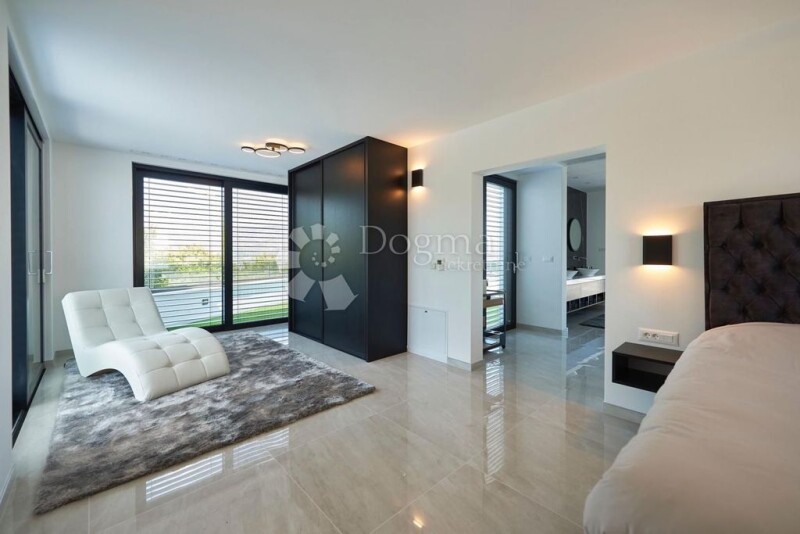 Luxury villa with sea views in an exclusive location in Trogir It is in this beautiful city, located in a beautiful coastal county, in an exclusive location we offer a top, modern and high quality villa. The building has a total of 370.09 m2 of usable living space spread over four floors (basement, ground floor, 1st floor and second floor) and 591 m2 of garden. The basement of the building consists of a garage space (35.63 m2), a hobby area (29.34 m2), a bathroom (6.57 m2), a tavern (23.21 m2) and an entrance hall (9.09 m2) as a corridor. premises and connects. On the outside of the villa is an access road that leads down to the garage, from which you can enter the other stairs and floors by internal stairs. Hobby space is designed as a space that can be a workshop, tool shop, office or room that can be repurposed and adapted to any hobby. Also, on the same floor, there is a tavern with a bathroom for socializing with friends and family. The complete villa is conceived and realized in the highest luxury and modern edition. It is accompanied by very beautiful modern lines, the materials used are of the highest quality on the market and all equipment, from built-in to devices, is of the highest possible quality. As an example of high quality, several important features can be highlighted, such as the facade made of 15 cm of mineral wool, Schuco joinery with three-layer bulletproof glass, heating and cooling performed via Daikin heat pump with water floor heating. The garden of the villa is pleasant, followed by a lawn while at the back is a large terrace with sun deck and a large heated pool. Every detail has been paid a lot of attention and the whole structure, both inside and out, has been maximally finished to perfection. The facility is more than noteworthy, great for a pleasant and comfortable life in maximum luxury and security, while it can also be a perfect investment for tourism given the location and the overall impression. A villa worthy of attention! Claudio Mezzalira Agent s licencom Mob: 099 – 285/7323 Email: claudio.mezzalira@dogma-nekretnine.com.