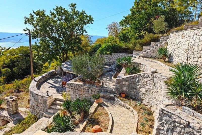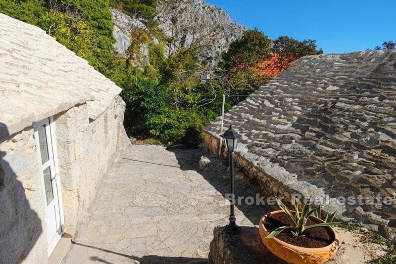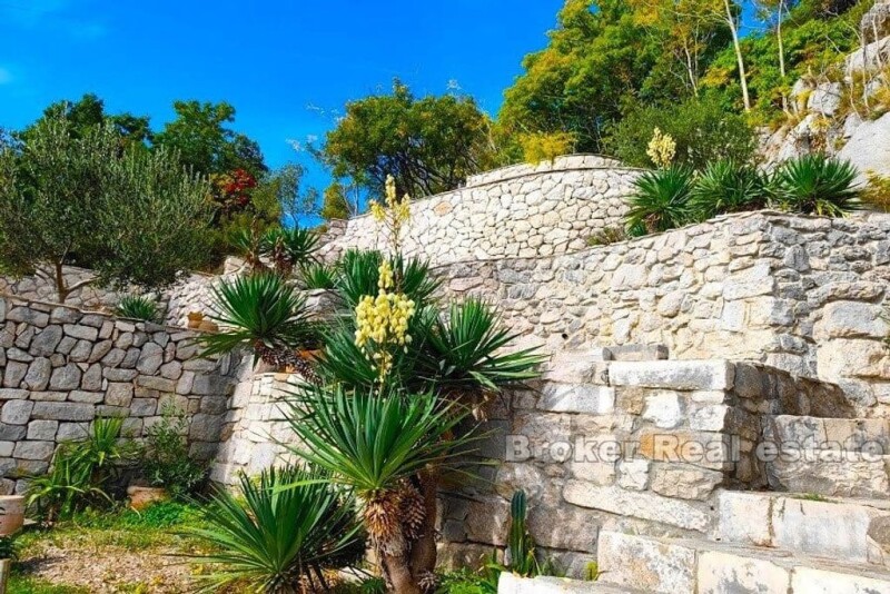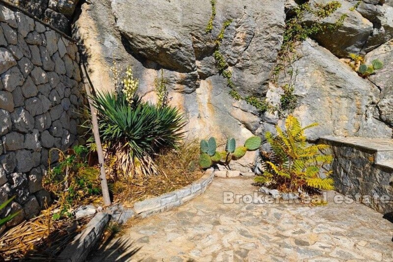 Stone houses with a view of the sea. It is a stone property with several renovated stone houses joined into one unit. This stone building is located at the top of the village, it is incorporated into the hill itself and forms a unique image of Dalmatian authenticity. The estate has a large number of cascading terraces designed for barbecues, entertainment, meditation and family gatherings, each with a fascinating view of the sea, islands and surrounding nature. All houses have a renovated facade and roof, they are mostly decorated inside, while one part is in the Rohbau version, which leaves the new owners with the option of decorating according to their own wishes. This stone building covers an area of 800m2 and a swimming pool was recently built in its southernmost part under a hundred-year-old oak tree. The property has asphalt access by car, electricity, water and telephone.