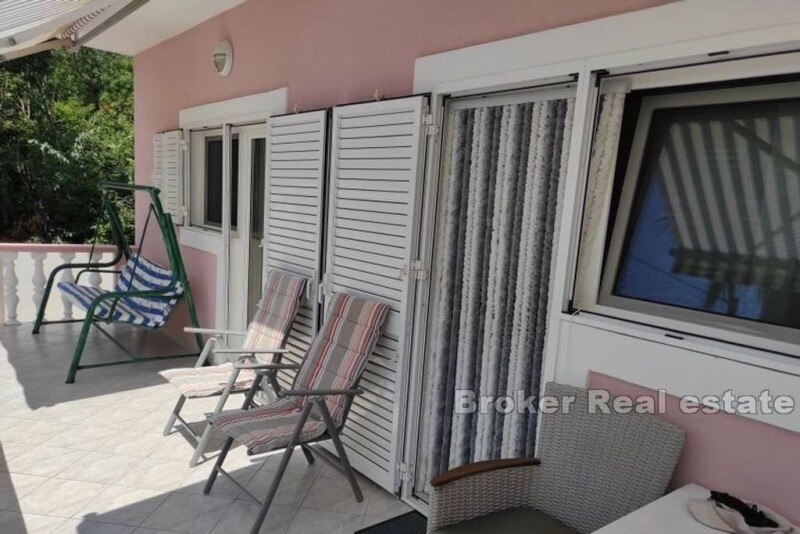 Apartment house with sea view located in the second row from the sea, 50m away near the city of Zadar. The living area of 296m2 is spread over three floors connected by an external staircase. On the ground floor there is a one bedroom apartment and a garage. The apartment consists of a kitchen with dining room and living room with access to the terrace overlooking the Mediterranean garden and the sea, one bedroom, one bathroom and pantry. On the first floor there is a three bedroom apartment consisting of three bathrooms, kitchen with dining room and living room with access to the terrace overlooking the sea. On the second floor there is a two bedroom apartment consisting of two bathrooms, kitchen with dining area and living room with access to the terrace which offers an impressive sea view. Arranged cultivated garden of 287m2 on which the outdoor furniture is located is surrounded by a wall which ensures privacy and space for a pleasant stay in the warmer months. In addition to the garage, the property also has an outdoor parking space for several vehicles. Distance from the house to the city of Zadar is 31 km. The special feature of the house is the location in a quiet place in the second row from the sea, close to the beach and other necessary facilities for living.