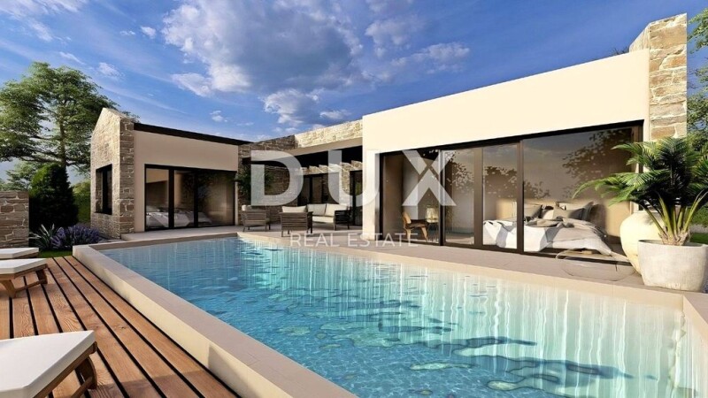 ISTRIA, POREČ - Modern house with swimming pool Bathed in a pleasant Mediterranean climate, located in the heart of the western Istrian coast, the ancient town of Poreč and its coastline of preserved natural beauty, landscaped parks, pine and oak groves that reach the sea itself, along which the clear sea, beaches, bays and islands alternate, spreads over an area of 139 km² and consists of 58 settlements. With the identity of an urban coastal city, Poreč is a city of culture, sports, entertainment, a city of tourism and true hospitality. One of the most attractive cities of Croatian tourism that uniquely combines the natural beauty of Istria, a rich cultural and historical heritage and the most modern amenities of a top tourist destination. The harmony of the old town core, which is a cultural monument, with one of the most famous Istrian cultural monuments, the Euphrasian Basilica, which is on the UNESCO World Heritage List, and the most well-maintained and best-equipped tourist settlements on the Adriatic, forms a mosaic of unforgettable experiences. Poreč is also a city that is much more than a summer destination of sun and sea. Poreč is a city tailored to the needs of people. A city in which there is a constant impulse to improve living conditions and make progress in various spheres greater. A city that is a pleasant, safe and well-maintained place to live where everyone can find their place, a city without surtaxes with high social sensitivity for all generations. Not far from the city of Poreč, offering a perfect balance of rural surroundings and proximity to the sea and urban amenities, a modern house with a swimming pool is for sale. The house blends into the settlement and landscape in terms of form and color. Steeped in tradition but also modernity, this house impresses with its refined elegance and the quality of construction guarantees long-term satisfaction and quality of living. The prefabricated house is designed as one residential unit that extends across one floor of simple and harmonious proportions. It consists of an open-concept space that unites the living room, dining room and kitchen, two bedrooms, an office, two bathrooms, a guest toilet and technical rooms. The yard is ambientally and horticulturally decorated and complete harmony is provided by a swimming pool with a sunbathing area. The excellent location and spatial organization of the interior and exterior of this property provide an opportunity for a comfortable family life or investment in a tourist rental business. The stated price of the property refers to the final level of completion without furniture, which allows for final decoration according to your own wishes and preferences, with the option of purchasing a fully equipped and furnished property with a price adjustment. The seller of the property in question is a legal entity. Dear clients, the agency commission is charged in accordance with the General Terms and Conditions: www.dux-nekretnine.hr/opci-uvjeti-poslovanja Iva Zajc Agent s licencom E- www.dux-istra.com ISTRIA, POREČ - Modern house with swimming pool.