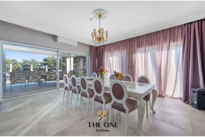 Luxury waterfront villa located in the heart of a small town, not far from Šibenik, takes your breath away with its elegant style of decoration as well as carefully selected details. Upon entering the villa, a spacious hall with a piano and billiards leads you to a large living room, kitchen and dining room. With 5 bedrooms, each with its own en-suite bathroom, sauna and hot tub, guest toilet and laundry, comfort is guaranteed. The outdoor area of the villa offers a spacious terrace on the ground floor, while on the first floor you can enjoy three balconies and a large terrace with a view of the sea and the Vodice archipelago. Enjoy the beautiful garden surrounded by Mediterranean plants, with a covered gazebo with a grill, an outdoor heated pool of 32 m2, deckchairs and a shower, and covered parking. This superb property by the sea is the perfect choice for anyone who appreciates the Mediterranean way of life, and represents a unique investment opportunity with high potential in tourist rental. The property is owned by a limited liability company. Not what you are looking for? Contact us for a personalized approach and a discreet tailor-made property finding service. THE ONE Real Estate E- www.theone.hr THE ONE E- www.theone.hr Luxury waterfront villa with a pool.