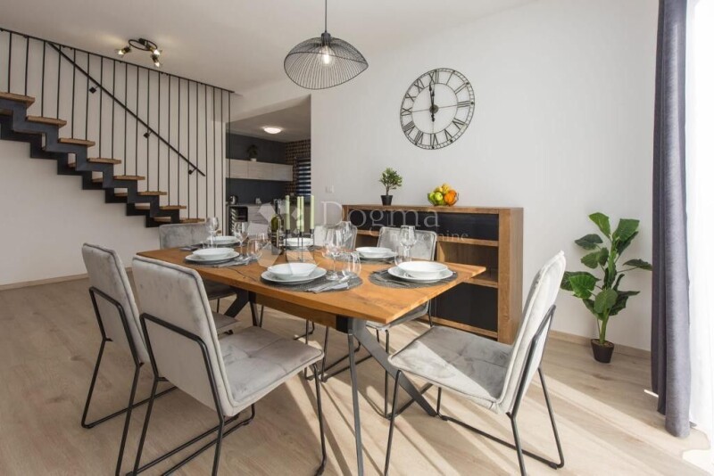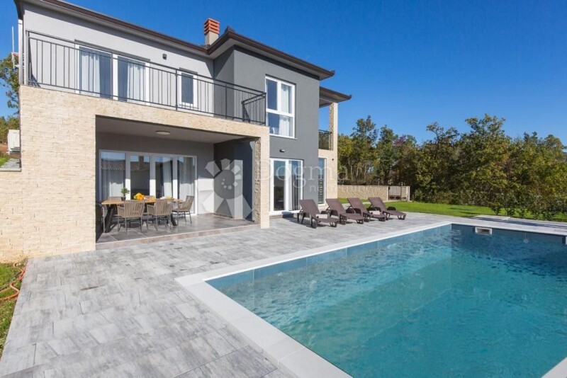 On the eastern part of the Istrian peninsula, where green hills and untouched nature merge with the crystal clear sea, where a handful of cultural and historical sights are hidden next to the art that you live, there is the medieval Labin. From the highest point of the town, there is a panoramic view of Kvarner and the islands and the inevitable tourist destination of Rabac, once a small fishing port where many fishermen sought refuge during bad weather. On the edge and quiet area of the city, just a few kilometers from the center, there is this modern new building with an open view of the greenery and the Old Town of Labin. House with an area of 147m2, which extends through the ground floor and first floor. In addition to the location itself, additional privacy will be provided to the future owners by the 900m2 garden, completely fenced with a hedge. The central area of the house is connected by open space - a growing trend in interior design that connects the kitchen with the dining room and the living room, where beautiful glass walls separate you from the covered terrace, sunbathing area and swimming pool. The usability of the space is thus much greater, while the concept itself provides flexibility in arrangement. On the ground floor there is also a small storage room, a toilet and a laundry room under the stairs that lead to the first floor, which contains three bedrooms with their own bathrooms, two of which have access to a terrace with a soothing view. For heating/cooling, the house uses air conditioning inverters in every room, underfloor heating and the possibility of installing a wood or pellet fireplace in the living area of the house. It will be furnished and completely ready for use at the end of 2022. It will have three parking spaces at the entrance to the house, which is reached by an asphalt road. Explore the largest green oasis of the northern Adriatic, an authentic way of life, excellent food, numerous events that will certainly intrigue you! The house offers its future owners the possibility of a wonderful place to live or a profitable property if you want to engage in tourism or tourist rental in order to return the invested funds faster! For any additional information and/or viewing, contact with confidence a licensed real estate agent with many years of experience in real estate transactions: LORENA KOGEJ Licensed agent Mobile 091/738-7200 Telephone 052/639-276 lorena.kogej@dogma-nekretnine.com.