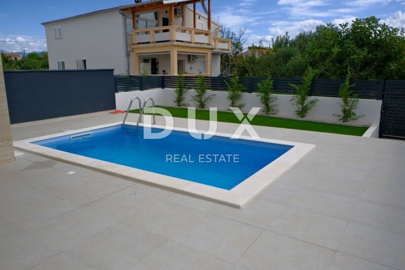 ZADAR, VIR - Modern semi-detached house in an elite location with a private pool near Jadro beach! In the heart of the most sought-after location on the island of Vir, there is a beautiful semi-detached house that perfectly combines luxury, modern design and timeless elegance. This new, impeccably decorated property offers everything you need for a perfect life or holiday on the Adriatic. Located just a five-minute walk from the golden beach of Jadro, this house offers exceptional privacy and comfort in the most desirable part of the island. The ground floor consists of a spacious and bright living room, which opens to a landscaped yard with a swimming pool through sliding glass walls. Imagine mornings with coffee on the terrace, while the sun gently illuminates the water, creating breathtaking scenes. On the ground floor there is also a functional storage room and an elegantly decorated toilet, which makes this house perfect for everyday life or gatherings with family and friends. Upstairs, three luxurious bedrooms await you, the master of which has its own, intimate bathroom. The rooms are designed with attention to every detail, providing maximum comfort and privacy. An additional bathroom on the first floor ensures practicality, while electric blinds and air conditioners in all rooms provide complete comfort throughout the year. With a total of 135 m2 of living space and 140 m2 of garden, this house provides a perfect balance between spaciousness and comfort. Two parking spaces ensure practicality, while the courtyard with a swimming pool is an ideal place to relax and enjoy warm summer evenings. As a special bonus, this is the only part of the island of Vir with sewage, which further increases the value of this property. Vir is an island that captivates with its pristine nature, crystal clear sea and the hospitality of the local population. In the last few years, Vir has become synonymous with luxury tourism, offering its visitors top facilities and unforgettable experiences. Its proximity to Zadar and the rich offer of activities make it an ideal place for those looking for peace and relaxation, but also for those who want to spend their vacation actively. On Vir you will find everything - from beautiful beaches, charming restaurants and shops, to historical sights and colorful events that take place throughout the year. This semi-detached house on Vir is not just real estate, but an opportunity to create memories that will last a lifetime. It is ideal for those who value superior style, comfort and an exclusive location, making it the perfect home or investment. Contact us today! Dear clients, the agency commission is charged in accordance with the General Terms and Conditions. Josip Šestan Agent s licencom E- www.dux-dalmacija.com ZADAR, VIR - Modern semi-detached house in an elite location with a private pool near Jadro beach! B.