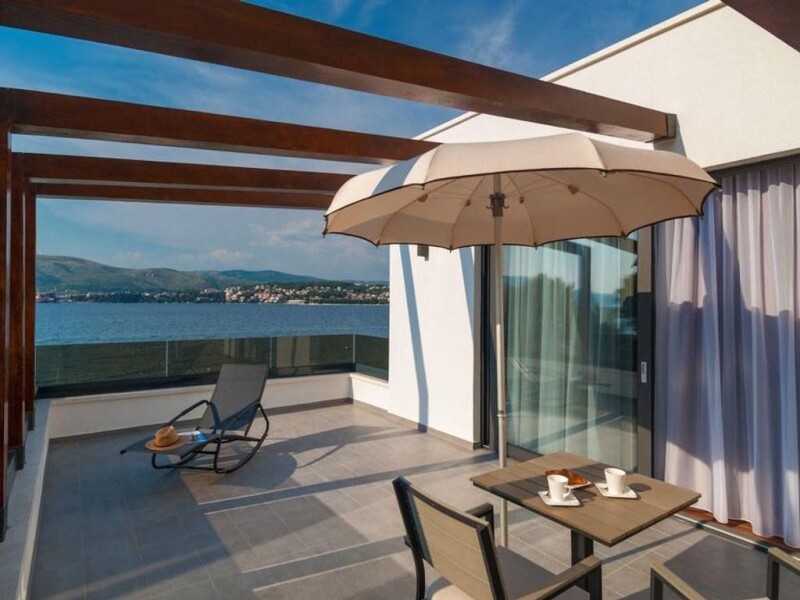 Čiovo is a small island situated in middle Dalmatia, almost an extension of the city of Trogir, it’s connected with the city Trogir by a drawbridge and administratively divided between Split, Trogir, and Okrug. Known for its olive grows, historical architecture, and Mediterranean vegetation, an archipelago with small picturesque little islands, mild climate, and most beautiful beaches in hidden bays. If you are into untouched nature, clear water, and endless sunsets over the horizon you are at the right place. Perfectly close to all other neighboring islands and also the city of Split, you get to experience both of everything. A dash of a rural, traditional lifestyle on the outskirts of the island but also a city life, on Čiovo, Trogir, and Split as its conveniently positioned between all those exciting locations. With Croatia Real Agency you will experience the best of what real estate in Croatia needs to offer, that’s currently on the market. Our goal is to thoughtfully and strategically take all your demands and wishes into consideration and deliver you the best luxurious property you dreamed about having! With this ultra-modern urban villa on this charming island, you will find your escape zone, your relaxation home! This 300 m2, 2-floor piece of a property is situated on a 700 m2 plot. Situated only 2.5 km from the city center and just 15 m in proximity to the first beach you will fall in love with this home immediatley. The elegant and clean lines of its looks will impress you immediately, admiring its outstanding and innovative performance. It is equipped with 6 fully new, functional, and stylish bedrooms and private bathrooms. The vibrant small garden, topped with palm trees and cascade flower beds adds that lively aspect to the whole concept, as well making the place more vibrant and dynamic. Turning it into your own green oasis. As a true statement piece, we have to mention a large blue swimming pool that will just draw all the attention to itself, making all those hot summer nights a cooling and fun experience. Ideal not just for an intimate relaxation zone but also as a place to throw gatherings with friends and family. With the mesmerizing view over the sea, this all-stone-tailored house could be a perfect match for what you are looking for! Additional to the previously mentioned features the house is equipped with a built-in sauna, hot tube, private gym, and stunning indoor swimming pool! Topped with high-end house appliances and furnished with modern luxury details, as well the entire place had an air conditioner and a central heating system. Dive into this wonderful oasis by exploring more of what this place has to offer. Contacting us we guarantee you the best quality and service from a hard-working and experienced Croatia Real Estate team! We look forward to starting this real estate journey with you, making all your expectations come to reality!.