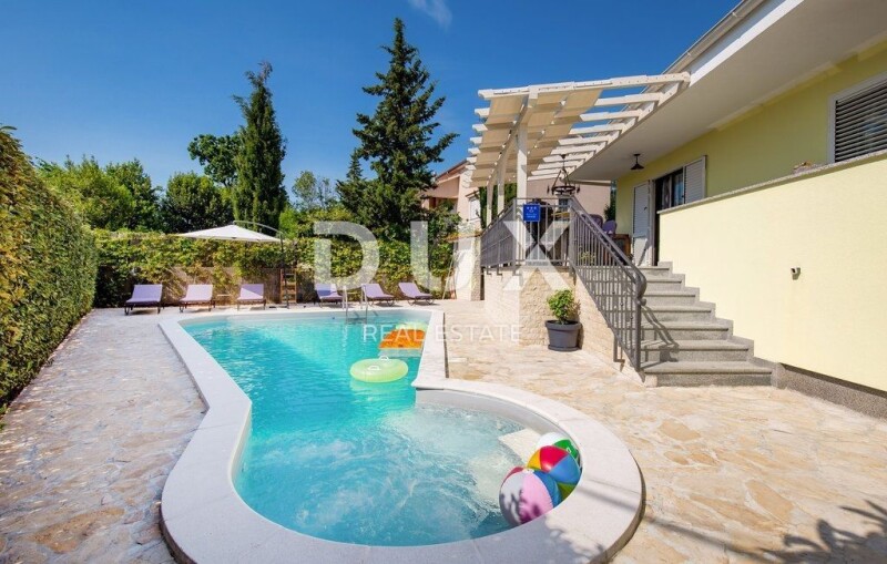 OPATIJA, POBRI - detached house 170m2 with sea view and swimming pool + 700m2 of surroundings It is located in a peaceful and quiet location, yet in the immediate vicinity of all the necessary facilities for a quality life. The house is south-oriented and has a sea view. It consists of a ground floor and two floors connected by an internal and external staircase. The ground floor consists of a garage and an additional boiler room tank. Both floors are in fact a two-story apartment consisting of a living room and kitchen with access to the terrace, tank and bathroom in the lower part and 3 bedrooms in the upper part. The villa is well built and luxuriously equipped, all built-in materials, floor and wall coverings are of high standards (10cm thick facade insulation, heating - heat pumps, top-quality aluminum joinery). It is sold fully furnished with first-class furniture and appliances. The yard is landscaped and constantly maintained. The house has a swimming pool and a garden house with a summer kitchen. Clean and tidy property. Certainly a beautiful property for a luxurious family life, but also suitable as an investment in the form of elite tourism. Opatija, a beautiful coastal town located on the Adriatic Sea, is a famous tourist destination for tourists from all over the world. The city is surrounded by beautiful nature, at the foot of Mount Učka. Real estate in Opatija offers a priceless view of the sea and the surrounding islands of Krk and Cres. Opatija is surrounded by charming small towns with old houses located in narrow streets rich in history. The streets of the city of Opatija are made up of properties that stand out with their specific architecture and villas dating back to the Habsburg period. A large selection of beaches, crystal clear sea and a variety of tourist services are key factors that make Opatija a perfect tourist destination recognized by neighboring countries as an excellent investment choice. Real estate prices in this area are growing, rental occupancy is excellent, which has caused a return on investment of 5% to 10% and attracted foreign investors. Dear clients, the agency commission is charged in accordance with the General Terms and Conditions. Patrik Hrštić Agent s licencom E- www.dux-opatija.com OPATIJA, POBRI - detached house 170m2 with sea view and swimming pool + 700m2 area.