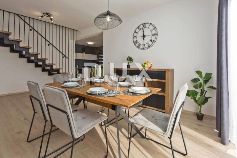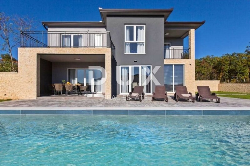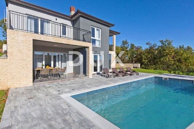 ISTRIA, LABIN - Modern new building with a panoramic view On the southeastern coast of Istria, where the green hills meet the sea, where nature and heritage come together, there are two towns of similar size, but with different, but mutually complementary characters - Labin and Rabac . The picturesque town of Labin rises on a hill 320 m high, only five kilometers from the white pebble beaches in Rabac. Intertwined with rich history and mining that marked this region, Labin, which was declared an independent republic for a short time, is today a fascinating city of contradictions; old and new, history and present, tourism and art. In the vicinity of the town of Labin, a modern new building with a panoramic view is for sale. The quality-built house extends through the ground floor and first floor. The ground floor consists of an open concept living room, dining room and kitchen with access to a covered terrace, toilet, storage room and laundry room. Upstairs there are three bedrooms with private bathrooms and two terraces. For heating/cooling, the house uses air conditioning inverters in every room, underfloor heating and the possibility of installing a wood or pellet fireplace in the living area of the house. It is fully furnished and equipped and is being sold as such. The yard is completely fenced and landscaped and contains a swimming pool with a sunbathing area and parking spaces. This modern newly built house in a quiet village with a panoramic view of the countryside is an ideal property for family life or as an investment for rental for tourist purposes. Dear clients, the agency commission is charged in accordance with the General Terms and Conditions. Iva Zajc Agent s licencom E- www.dux-istra.com ISTRIA, LABIN - Modern new building with a panoramic view.