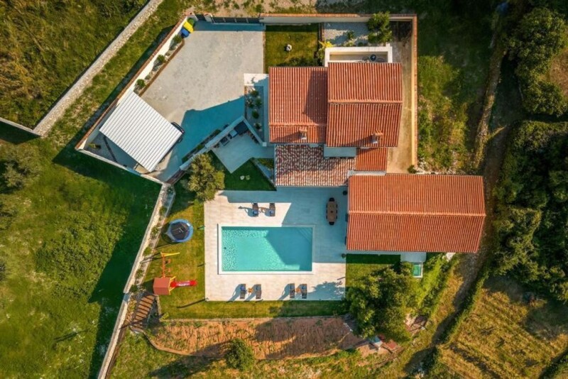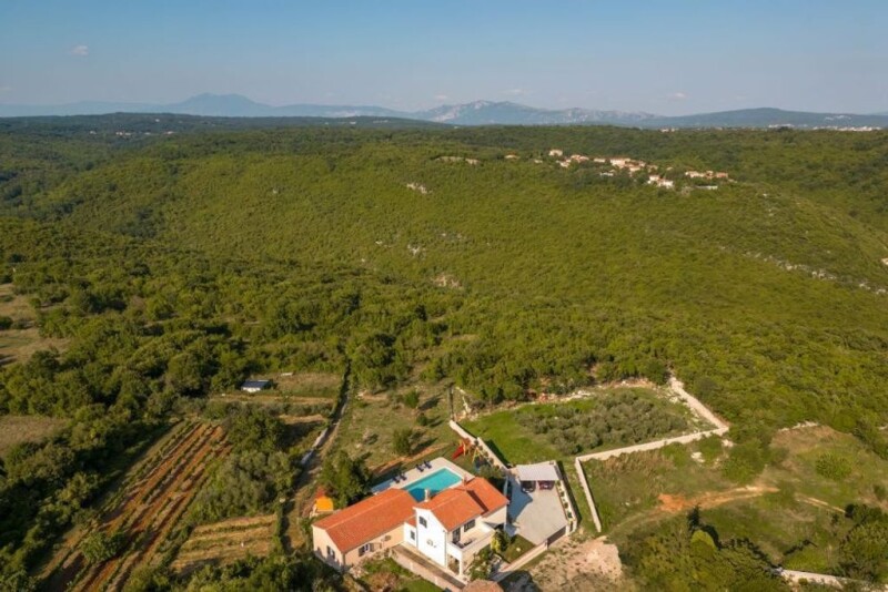 A piece of paradise with a breathtaking view in Rabac area! Total area is 272 sq.m. Land plot is 2208 sq.m. It is a beautiful luxury villa with a swimming pool that offers complete peace and privacy. Its area of 272.5 m2 extends through the ground floor and the first floor. The ground floor level of 187.25 m2 consists of a kitchen with an island of 24.10 m2, which is connected to a spacious salon of 26.90 m2, a dining room and a playroom of 42.95 m2, from where there is access to a covered terrace of 30 m2 and a garden with a swimming pool. On the ground floor there are also two bedrooms with their own bathrooms, another covered terrace of 15.10 m2, a toilet of 2.55 m2 and a corridor of 7.05 m2. The internal stairs lead to the first floor level with a total area of 70.85 m2, and it consists of a hallway of 9.05 m2, one bedroom of 16.85 m2 with a bathroom of 5.70 m2 and another bedroom of 12.45 m2 with a bathroom of 7.15 m2. Each room has its own balcony. The villa is equipped with six air conditioners that are used for cooling and heating, and a fireplace in the living room that, in addition to the atmosphere, heats the entire ground floor of the villa. On the terrace there is a summer kitchen with a barbecue with access to a large heated pool of 50 m2 and a sun deck around the pool of 163.30 m2. The villa is built and equipped with top quality materials, furniture and appliances and is sold fully furnished. It's just up to you to bring your things and move into this superb home. For additional security, the villa is equipped with 4 surveillance cameras and an intercom with a camera. There is also a charging station for electric vehicles on the garden plot, and there is space for a total of 5 vehicles, of which 2 spaces are covered. The garden is decorated with grass and various Mediterranean plants: oleanders, cypresses, lavender, immortelle, rosemary, bougainvillea, wisteria, and there is a private children's park equipped with a sandbox, swings, a trampoline and a slide. The villa has an A+ energy certificate and everything is prepared for the installation of solar panels. Perfect Istrian villa! Ref: RE-U-26181Overall additional expenses borne by the Buyer of real estate in Croatia are around 7% of property cost in total, which includes: property transfer tax (3% of property value), agency/brokerage commission (3%+VAT on commission), advocate fee (cca 1%), notary fee, court registration fee and official certified translation expenses. Agency/brokerage agreement is signed prior to visiting properties.