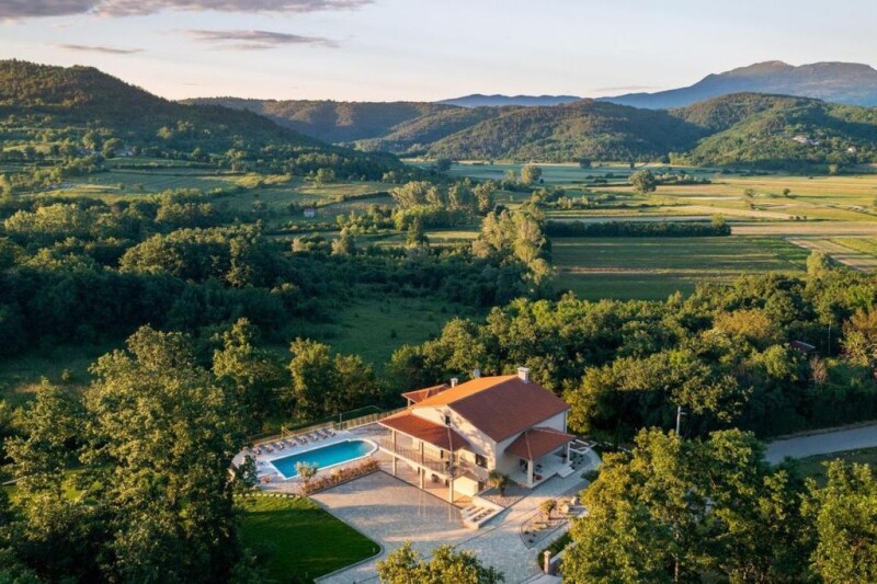 Welcome to this little picturesque medieval town, Labin. Known for its numerous galleries and artists this little town is located in the eastern part of Istria, only three kilometers from the sea. It is the perfect destination for those in search of cultural tourism who have a love for antiquities, swimming, sunbathing and amazing views! From the top of the old town, there is a beautiful view of Rabac, Kvarner, Gorski Kotar, Velebit, and Prklog which is a nearby green cove and a protected region because of its beauty making this place a true paradise to stay at. A city of long and rich history, filled with cultural monuments and natural beauty. Sports and recreation lovers can enjoy cycling, walking, free climbing, fishing, and horseback riding and will enjoy the fullness of this adventurous area! Choose Labin as your favorite Istrian holiday destination and enjoy your stay here at any time of year. Whether you come here with friends or children, you will discover the charms of Labin’s unique nature and take your deserved time to relax and unwind! Are you looking for a romantic yet elegant house in the middle of a fairytale wilderness? This absolutely stunning villa is your dream home! Without of doubt this picturesque modern take on a rural-looking style is what makes this home so interesting. Not to mention the stunning nature this house is surrounded with and dented in like a gem is a statement piece of architecture that stands out and catches your eye immediately! This 250 m2, 3-floor villa is fully equipped with 5 bedrooms and 3 bathrooms on an overall property of 3000m2. Newly build in 2021. this astonishing property is 20 km away from the center of Labin and about 17 km from the seashore. As it’s situated in a valley surrounded by lots of wild nature it is suitable for those looking for more of a private type of property, followed by a quiet and tranquil atmosphere. Topped with a beautiful outdoor kitchen area on a stunning terrace that overlooks the valley is ideal for all those summer gatherings as you will be able to relax and enjoy nature and the most stunning view this place has seen! If you are looking for a spacious playground for kids to enjoy, we have something for you as well! This spacious garden is perfect for little ones as it has a lot of space and is filled with lots of different zones and pathways, which makes the whole atmosphere dynamic and fun! This great one-of-a-kind opportunity doesn’t come twice so you better hurry up and give a chance to this great investment! Dive into this lovely area of Labin by checking out this stunning property as we guarantee you premium quality estate and a long-term investment that will fulfill all of your demands for an attractive price and amazing service from our team in Croatia Real Estate-u!.