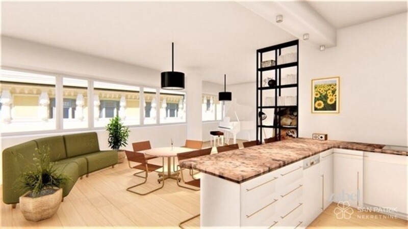 A unique property for sale in the center of Zagreb, on Tkalciceva Street, one minute from Ban Jelacic Square. The penthouse (4th floor) in a newer building with a reinforced concrete structure (1988), which remained completely undamaged during the earthquake, has a net area of 307 m² with a beautiful terrace (floor plan of 69 m²) offering a magnificent view of the city center and Medvednica Mountain to the north. Currently used as a commercial/office building, the property has the potential to be converted into two luxurious apartments. The attached floor plan is one of the variants for conversion into residential space. The apartment has a private elevator. The micro and macro location of the apartment is prime. It is located in the strict center, close to all social amenities, yet in complete peace and quiet. It is ideal for a successful individual who wants to live in complete luxury and who appreciates the charm and quality of life of the city center. The ownership ratio is 1/1. There is the option of purchasing with a bank loan. PRICE: 4,201 EUR / m2 Features * Paved street * Large terrace * City / town center * Large terrace * Access - paved.