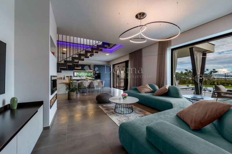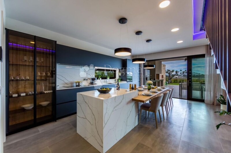TAR - in the place that connects Poreč and Novigrad, the story of the best olive oil of our peninsula begins! Olive oils from Tara and Vabriga are recommended by world olive oil guides. And tastings in the households of valuable producers and walks along the centuries-old plantations are an experience for all the senses. The wide range of nature offers you various opportunities that you can combine with activities such as an active holiday in nature, enjoying centuries-old olive groves, vineyards that lead to the largest Istrian river - the Mirna, which flows into the Adriatic Sea. Furthermore, fishing is also one of the traditional activities of this magical region. Let your stay in Istria be completed by a fascinating and designer villa. Surrounded by greenery with a view of the sea, it will delight you at every glance. It consists of 285m2 of living space on two floors with a small basement. The villa is surrounded by a garden of 843m2 with parking for 4 cars. Infinitiy pool of 50m2 will provide fun and relaxation for all family members! Furthermore, it contains 5 bedrooms with a total of 5 bathrooms. It has underfloor heating installed. The wellness area is the next room that, with its elegant design, fits perfectly into your future home or property for tourist purposes. The open space provides a touch of sunlight and thus gives it an additional feeling of warmth. The villa is sold fully furnished with full integration of video surveillance. Tar and Vabriga are places where you can truly feel the warmth of the hosts' hospitality! A villa is an excellent investment that guarantees a safe, stable and quick investment return if you want to engage in tourist rentals. For any additional information and/or viewing, contact with confidence a licensed real estate agent with many years of experience in real estate transactions: LORENA KOGEJ Licensed agent Mobile 091/738-7200 Telephone 052/639-276 lorena.kogej@dogma-nekretnine.com.