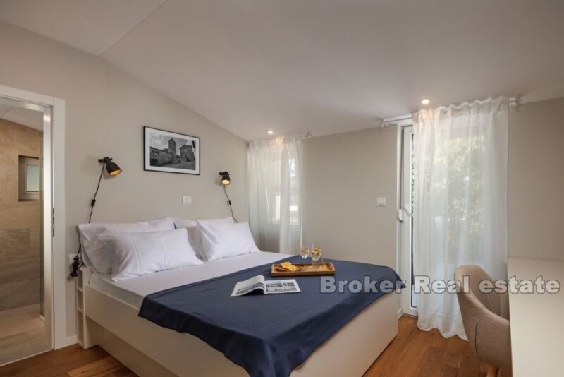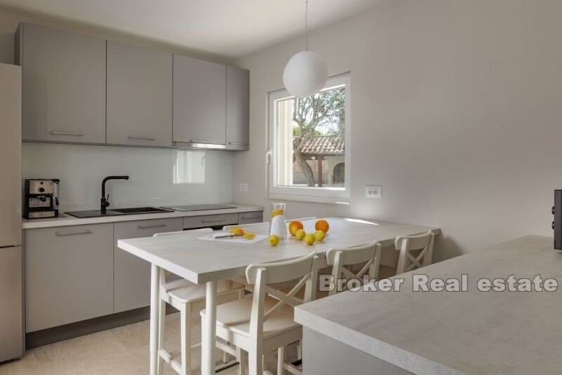 For sale is a modern villa with a living area of 165 m2 on a plot of 488 m2 in a quiet and beautiful place not far from Umag. It extends over two floors and consists of an entrance hall, open-space living room, kitchen and dining room, four bedrooms, two of which have their own exit to the balcony, and one to the terrace, and three bathrooms. In the yard of the house there is a summer kitchen with a barbecue, a terrace with a beautiful stone table and a heated swimming pool that creates an ideal place for relaxation and socializing. The villa stands out for its design and modern interior. There are various activities near the villa, including the famous Aquapark Istralandia, and the nearest beach is a 10-minute drive away.