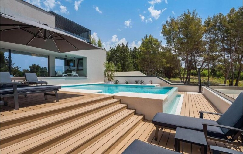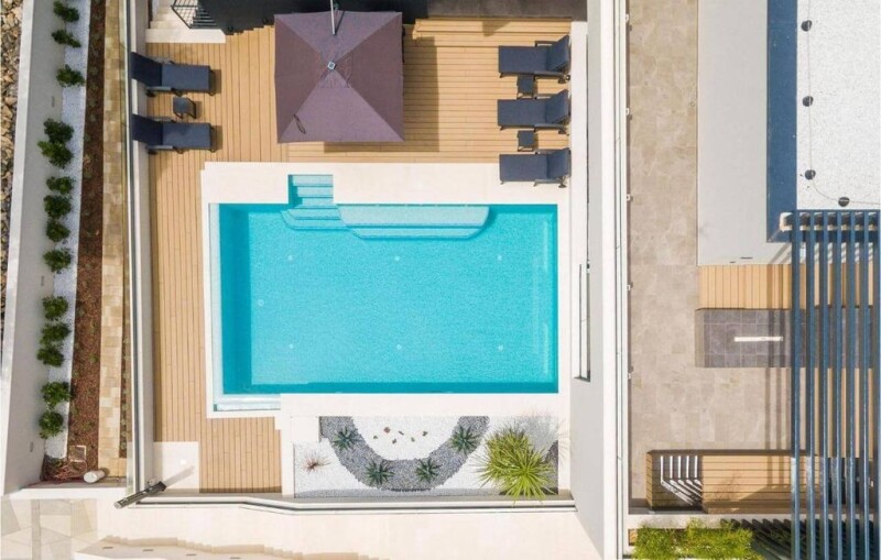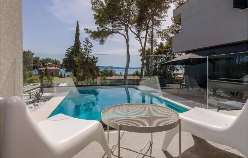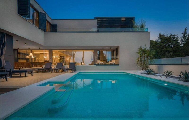 Location: Zadar Built: 2019 City center: 4,8 km Sea: 0.55 km Airport distance: 10 km Inside space: 453 m2 Plot size: 1209 m2 Bedrooms: 5 Bathrooms: 5 Swimming pool: 44 m2 Parking: 5 Air-conditioner Gym Sauna Cameras Patio Garden.