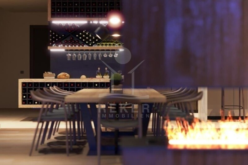 First-class new villa to fall in love with with pool and sea view This spectacular new villa impresses with 230 m² of top-class living space on a 1,600 m² plot. Four bedrooms and four bathrooms await you here. Let yourself be pampered by the whirlpool on the roof terrace after you have refreshed yourself in the 50 m² saltwater pool and enjoy delicious food in the 42 m² summer kitchen with toilet. A carport for your car rounds off this all-round carefree package. This villa is in a very beautiful, quiet location, about 13 km from the sea and the center of Poreč. ~.
