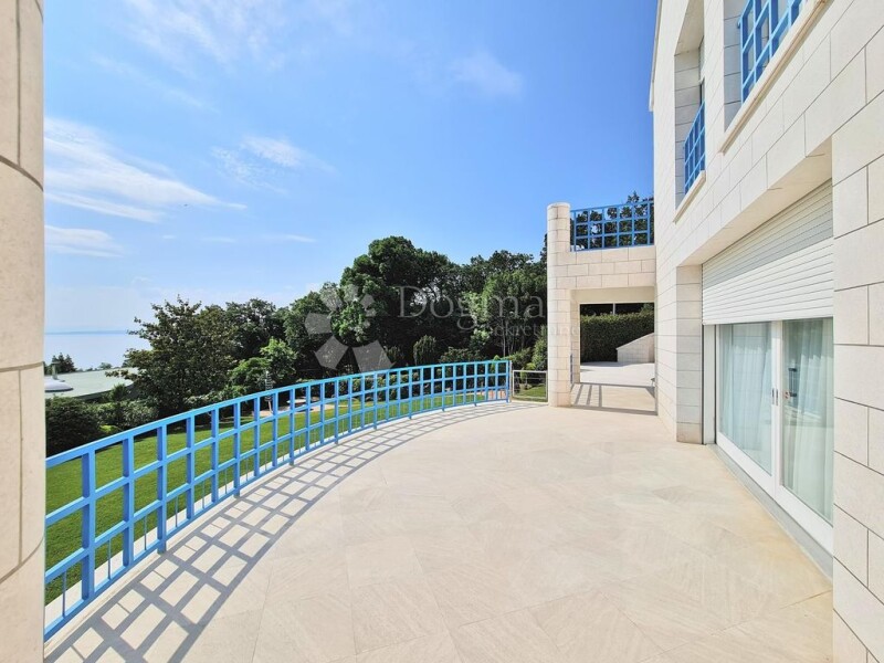 In the sunniest part of the Opatija Riviera, there is a residential villa, winner of multiple awards from the Association of Architects, surrounded by a beautiful garden and offering an open view of the sea and the entire riviera. The concept of the villa is designed for the luxurious enjoyment of a single family, with a large and spacious living area (kitchen, dining room, lounge) that has direct access to the indoor pool, sauna, and social activities lounge. On the upper floor, there are four separate bedrooms, each with its own bathroom, beautiful terraces, and an additional study room. In the basement of the building, there is a smaller apartment intended for the villa's staff. There is also a large spacious garage for two cars and the possibility of external parking in front of the building. The villa features central heating powered by oil, solar collectors, and air conditioning throughout the property. The villa is located within a ten-minute walk from one of the most famous beaches on the Opatija Riviera, facing the sea completely and completely protected from noise. For any additional information and possible property viewing, please contact: SAŠA IVANIŠEVIĆ +385(0)91 6707 890 sasa.ivanisevic@dogma-nekretnine.com KARIN ŠTIMAC +385(0)98 286 734 karin.stimac@dpgma-nekretnine.com.
