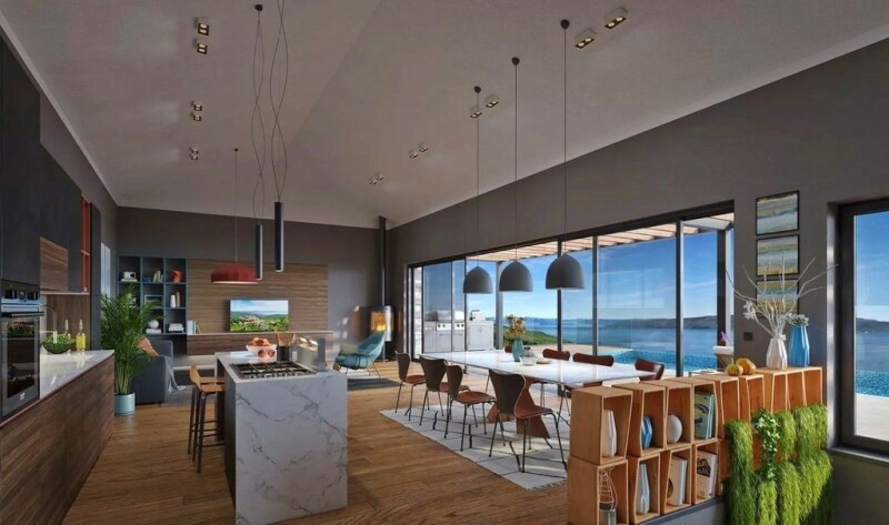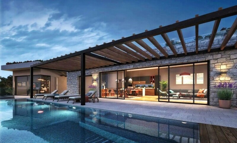 ISTRIA, RABAC - An impressive villa with a sensational view On the southeastern coast of Istria, at the place where green hills meet the sea, where nature and heritage come together, there are two towns of similar size, but with different, but mutually complementary characters - Labin and Rabac, just five kilometers apart. Rabac, due to its white pebble beaches, rich Mediterranean vegetation and crystal clear sea, has been called the pearl of Kvarner. Once a small fishing village, today Rabac is an attractive tourist destination that hides a wealth of cultural events in a network of colorful streets. The green surroundings of Rabac and the picturesque hinterland invite you to adventure, research and recreation throughout the year. Not far from Rabac and Labin in a small settlement by the sea, a sensational villa with an impressive view is for sale. It is located among Mediterranean greenery in a quiet village on a hill with a view of the endless Adriatic Sea and islands. It represents a hedonistic property combining contemporary aesthetics with timeless materials resulting in a sophisticated blend of modern design, traditional Istrian architecture and enchanting nature. In addition to the harmonious combination of traditional and modern materials, this elegant property unites the openness to the infinite horizon of the sea expanses with panoramic glazing of the rooms while at the same time firmly creating a harmonious connection with the surrounding nature with extensive green roofs and natural materials. It is characterized by an excellent spatial organization of the exterior and interior. The interior is a perfect symbiosis of luxury and comfort - it consists of two floors with room heights of up to 4.5 meters and a usable living area of 265.67 m². The upper level contains a spacious, light-filled living area that unites the living room, dining room and kitchen. A covered terrace extends along the entire length of the living area, which serves as an exclusive continuation of the open-air living room with a summer kitchen to which the sunbathing area of the 39 m² (13x3) infinity pool extends. As part of the upper level, there is also a separate facility consisting of a storage room and a comfortable space with a bathroom that the future owner can use according to personal preferences (wellness, study room, guest house). The lower level represents the night area, which consists of three comfortable bedrooms with their own bathrooms. As part of the lower level, there is a room with a separate entrance that could be used as a fitness area or additional storage. The useful spaces that complement the floor plan are a guest toilet, a storage room, a laundry room and a utility room. The unobtrusive environment of eternally luxurious greenery of Mediterranean plants and lawns of the fenced garden is provided by an automatic irrigation system. Additional benefits of the property: - terrace around the pool made of teak and natural Kirmenjak stone with a flame finish - windows Schüko Profile AWS 65 aluminum construction with triple protection Argon Ug 0.6 E/m2K - internal doors made of Profile Real Thermo T65 aluminum construction, custom-made security doors with heat and sound insulation - all windows have pleated mosquito nets - fittings for Axor sinks and showers - Laufen, Geberit and Villeroy sanitary ware & Boch - switches and sockets from the series Busch & Jäger Future Linear with matte finish - smart home system - heating and cooling is provided by a Viessmann heat pump for hot water and a floor heating system with individual room controls - 1 GBit/s optical connection - alarm system and video surveillance with 5 cameras - preparation for solar and photovoltaic installation - preparation of e-car charging stations The property is in the final phase of construction, and completion is planned for the fall of 2023. The stated price refers to the property without furniture. The seller is a legal entity and VAT is included in the stated price. Proper documentation and ownership. Dear clients, the agency commission is charged in accordance with the General Terms and Conditions. Iva Zajc Agent s licencom E- www.dux-istra.com ISTRIA, RABAC - An impressive villa with a sensational view.