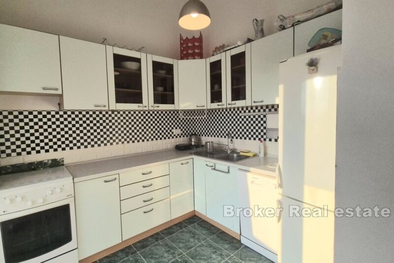 For sale is an apartment with a garage space and a beautiful sea view. The apartment, covering 62.55 m² and located on the second floor of the building, consists of a kitchen, a spacious living room, two bedrooms, two bathrooms, and two balconies, ideal for enjoying the sea view. It is situated in a quieter part of the city, ensuring peace and privacy while being close to all major landmarks and amenities. An advantage is that the buyer does not pay property transfer tax. This property is perfect for those seeking a peaceful life away from the city hustle, with easy access to all necessary urban facilities.