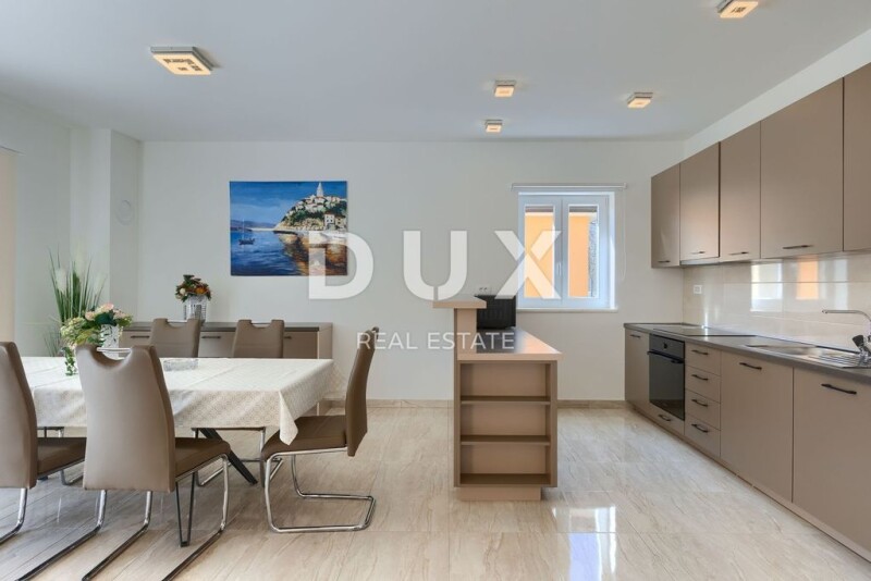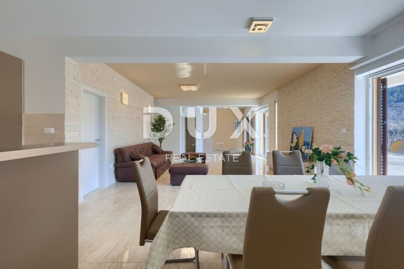 ISTRIA, RABAC - Detached house with a swimming pool and a large garden On the southeastern coast of Istria, at the place where the green hills meet the sea, five kilometers apart, there are two towns of similar size, but with different but mutually complementary characters - Labin and Rabac. Rabac, due to its white pebble beaches, rich Mediterranean vegetation and crystal clear sea, has been called the pearl of Kvarner. Once a small fishing village, today it is an attractive tourist destination that hides a wealth of cultural events in a network of colorful streets. The green surroundings of Rabac and the picturesque hinterland invite you to adventure, research and recreation throughout the year. Not far from Labin and Rabac, this beautiful detached house with a swimming pool and a massage tub is for sale. The house has an area of 208 m2 and its area is spread over the ground floor and first floor. It consists of a two-story apartment with an area of 165 m2, which consists of three bedrooms, three bathrooms, a toilet, a large living room with a dining room and kitchen, and terraces on the lower and upper floors. The house also has an additional apartment on the ground floor of 43 m2, 1 bedroom + bathroom. The house is air-conditioned, equipped with underfloor heating and fully furnished, and is being sold as such. On the plot of 1638 m2, there is a swimming pool of 38 m2, a summer kitchen of 35 m2 with a barbecue and sanitary facilities, and a children's playground. The entire lot is fenced with drywall and an internal net with enough covered parking spaces for several cars and automatic patio doors. This beautiful luxury property will satisfy even the most demanding, and the location will enchant you. OPPORTUNITY! Dear clients, the agency commission is charged in accordance with the General Business Conditions: www.dux-nekretnine.hr/opci-uvjeti-poslovanja Tina Širol Agent s licencom E- www.dux-istra.com ISTRIA, RABAC - Detached house with a swimming pool and a large garden.
